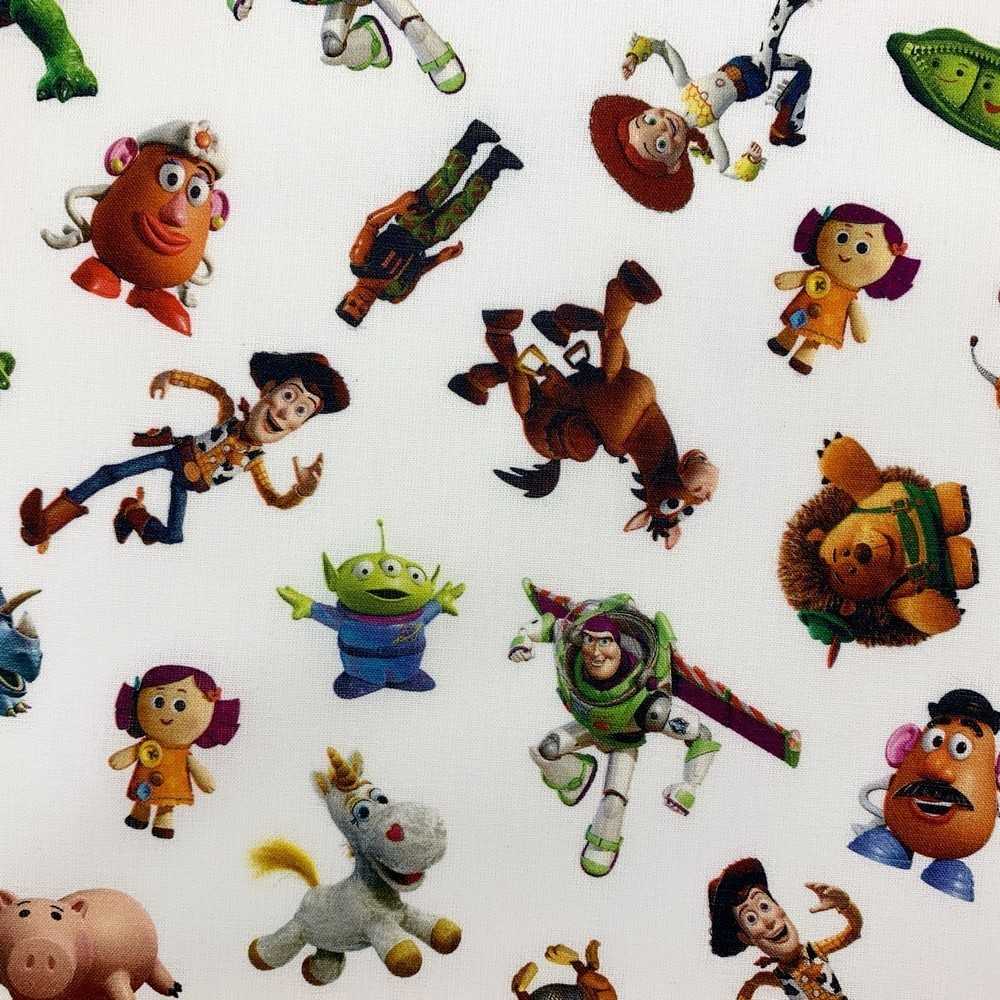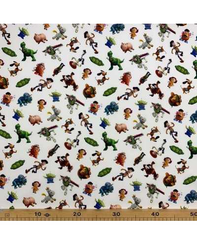 Tessuto cotone stampato Cartoni Animati fondo bianco