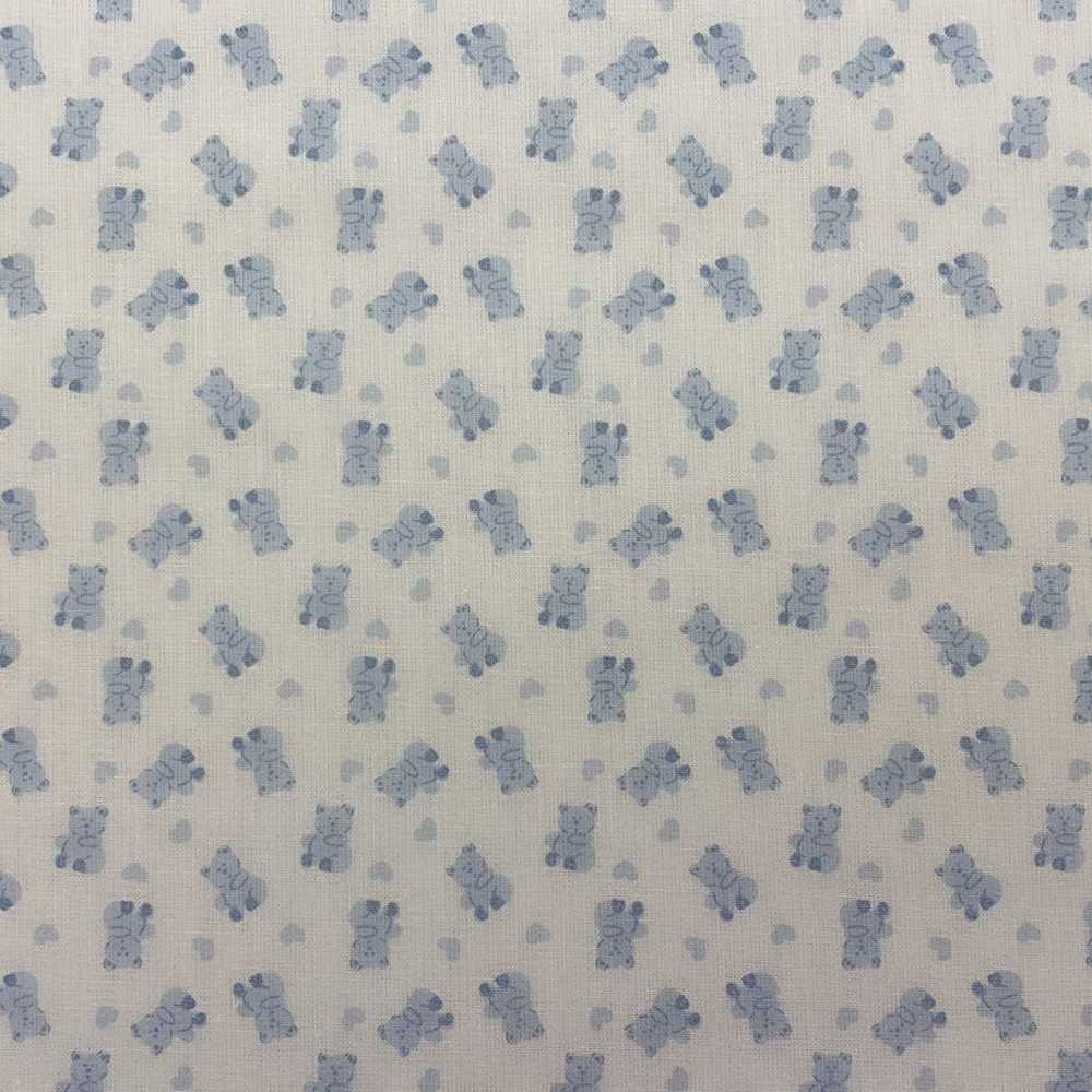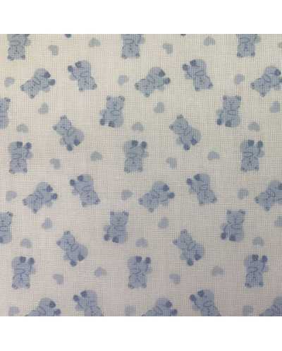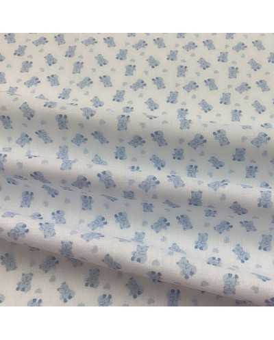 Tessuto cotone stampato orsetti celeste fondo bianco