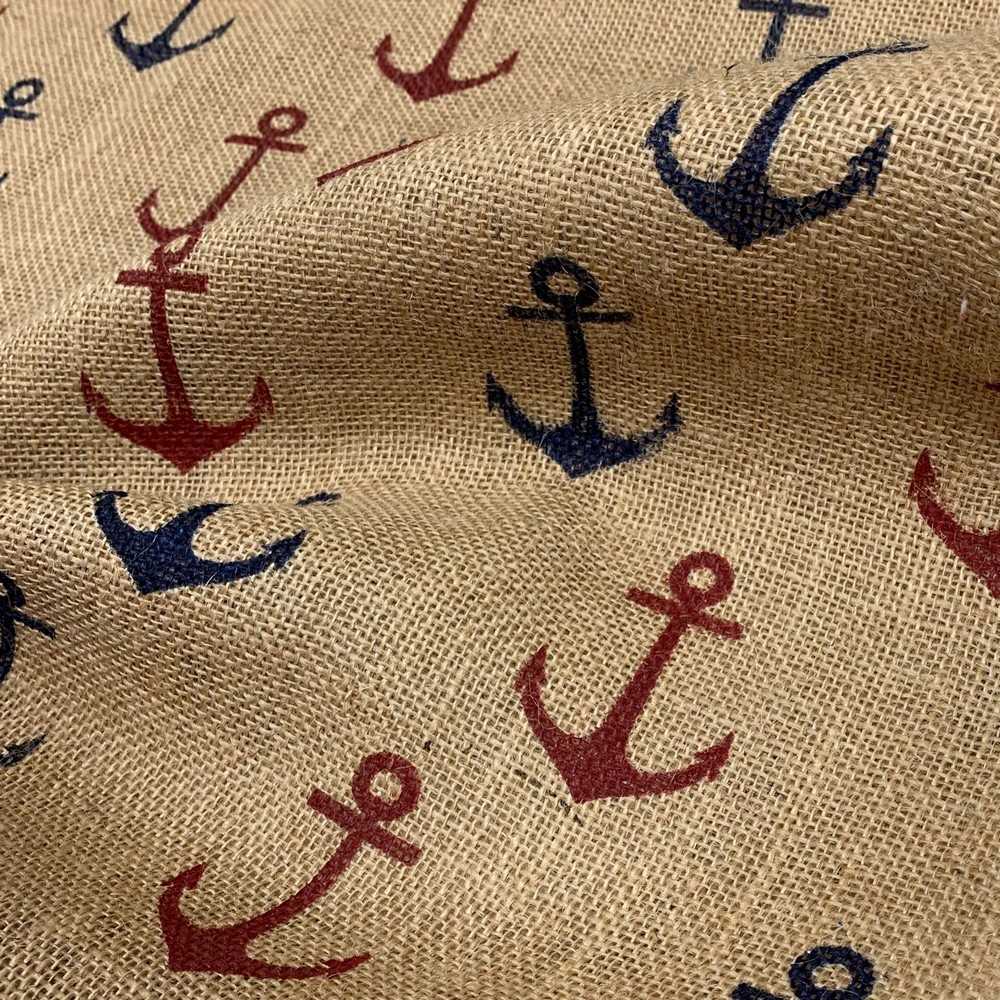 Tessuto tela juta naturale stampata ancore blu e rosso