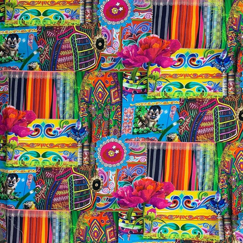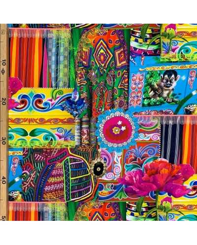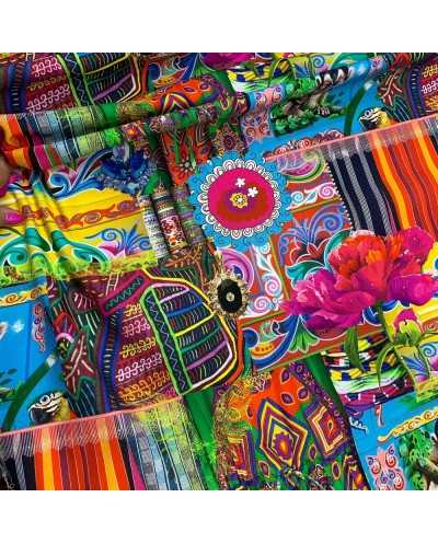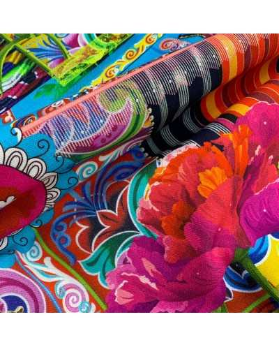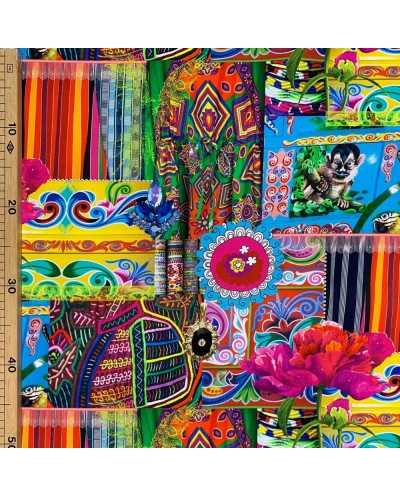 Tessuto Panama Stampa Digitale 50 Cm Animali Fiori
