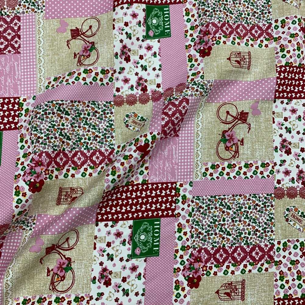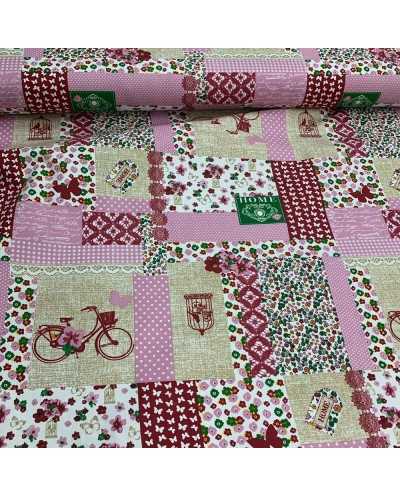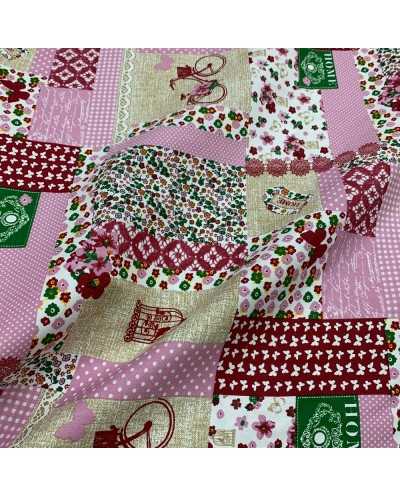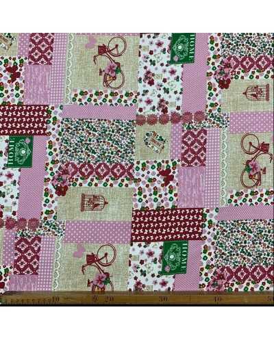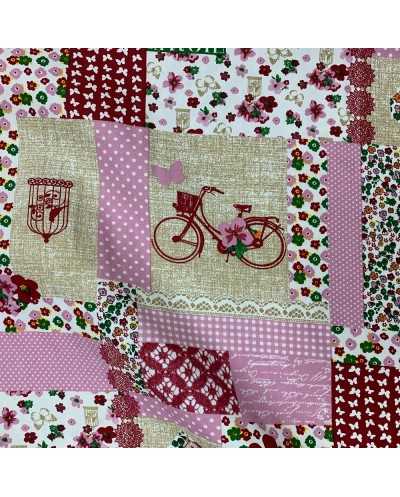 Tessuto Cotone Drill Fiori Bici 50 Cm Rosa