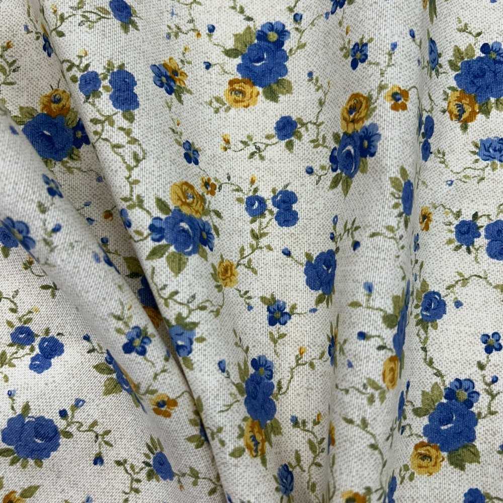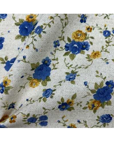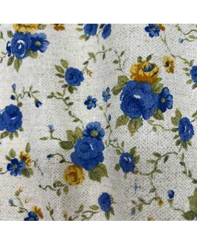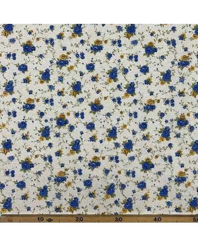 Tessuto Tappezzeria Luna Fiorellino Blu E Giallo 50 Cm