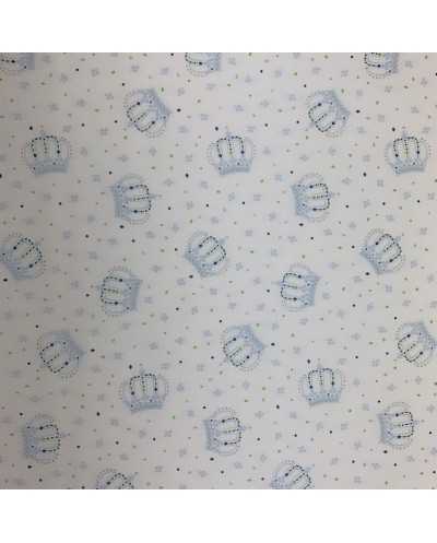 Tessuto cotone millerighe stampato glitter disegno coroncine royal baby fondo bianco