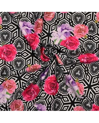Tessuto Scuba Geometrico E Fiori 50 Cm