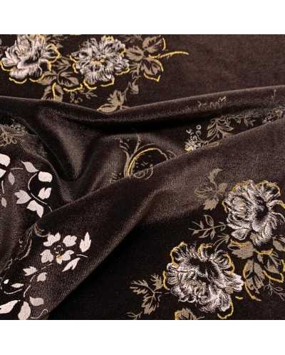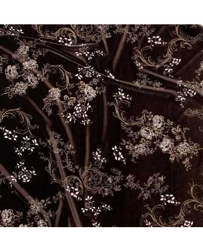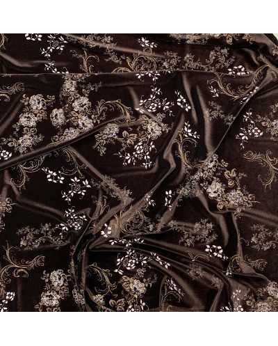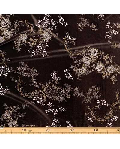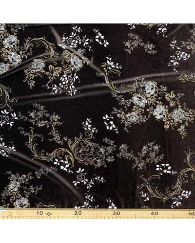 Tessuto Velluto Elastico Stampato Fiori 50 Cm