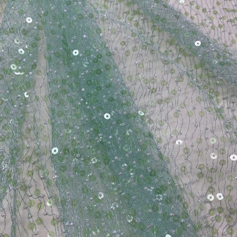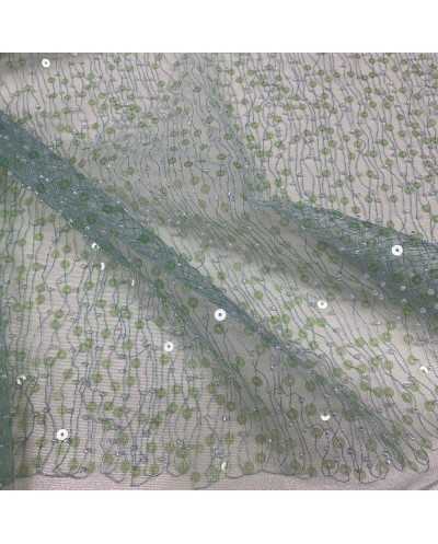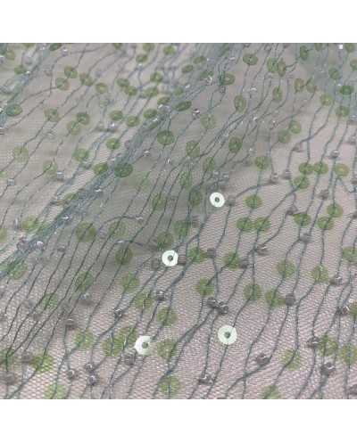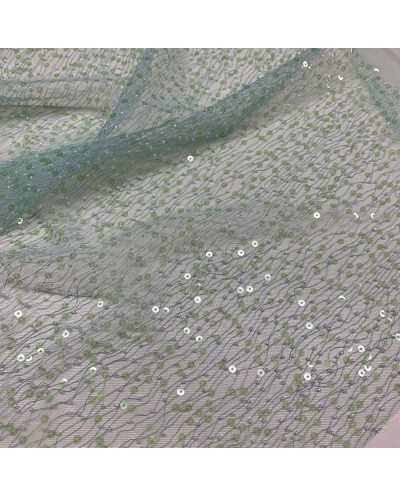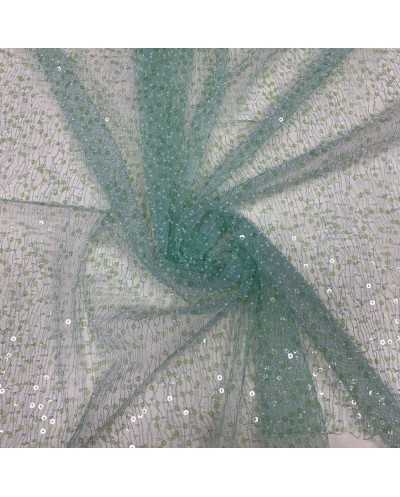 Tessuto Tulle Ricamato Paillettes Corallini 50 Cm