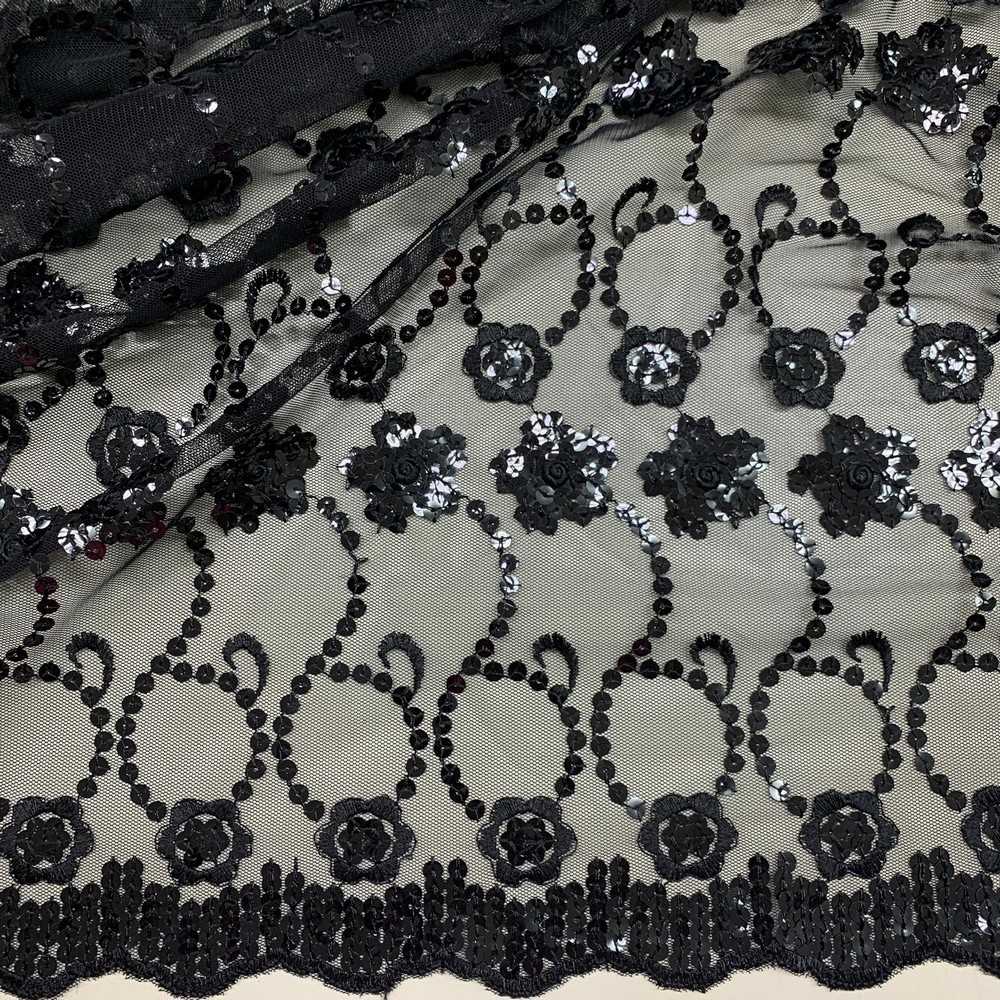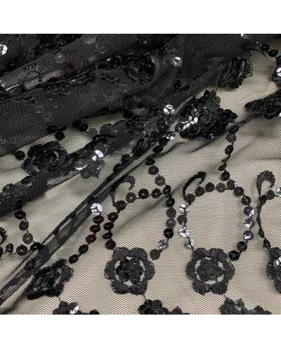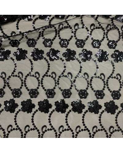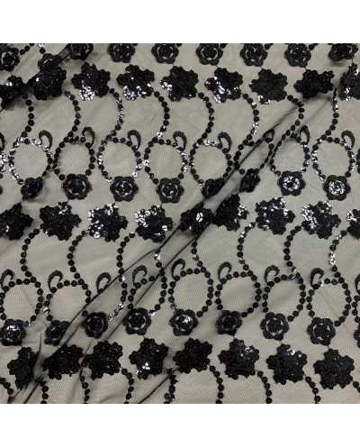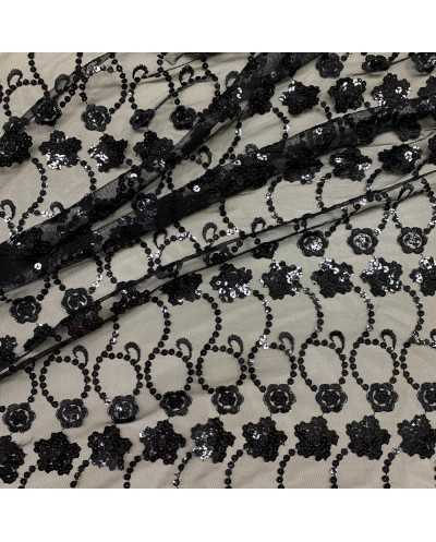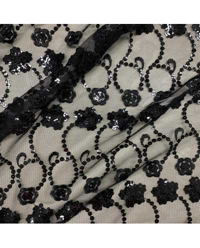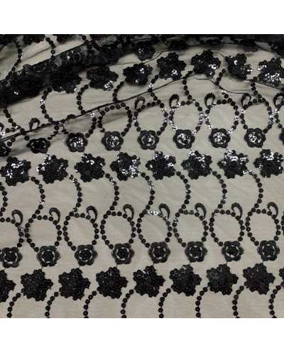 Tessuto Tulle Ricamato Paillettes 50 Cm