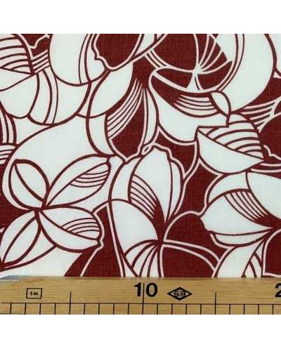 Tessuto Puro Lino Foglie Rosso India 50 Cm
