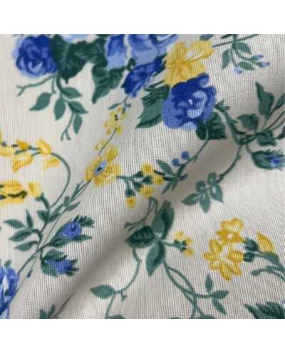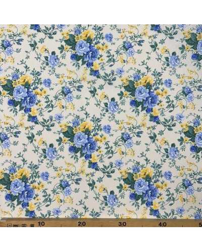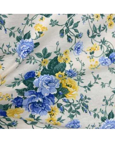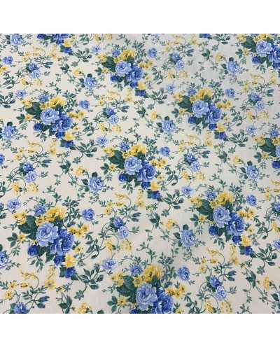 Tessuto Tappezzeria Luna Fiori Azzurro E Giallo 50 Cm
