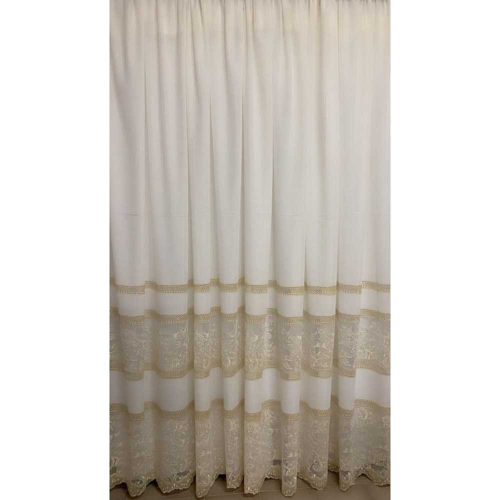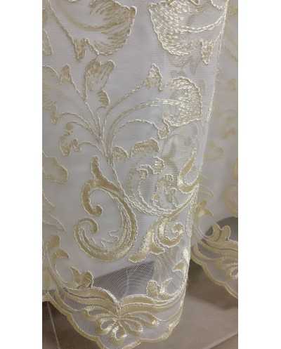 Tessuto Tenda Applicazione Tulle Ricamato 480x295 Cm