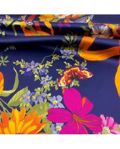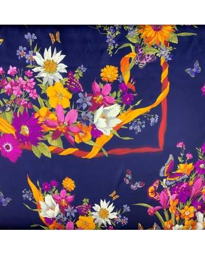 Tessuto pura seta stampa digitale disegno Bouquet