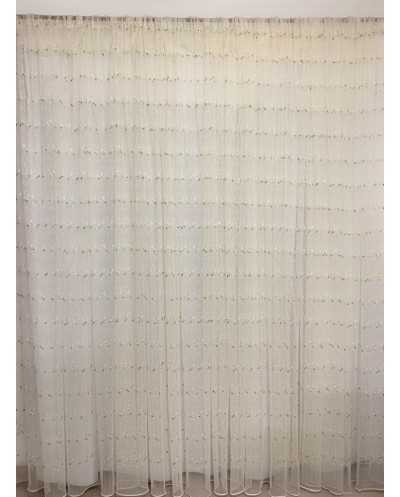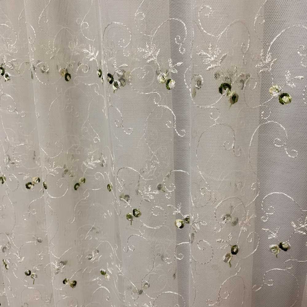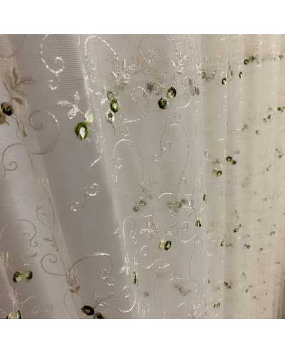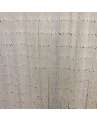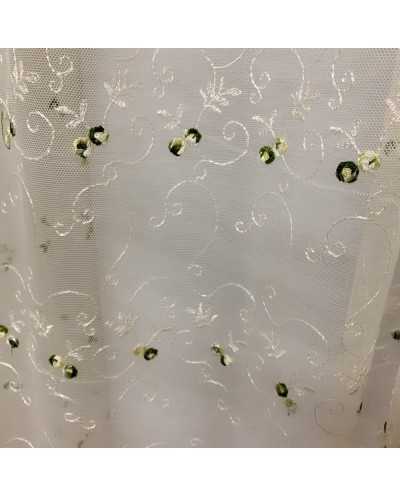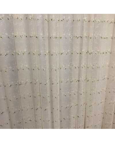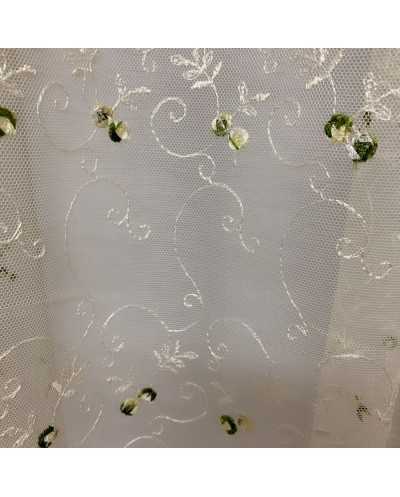 Tessuto tenda tulle panna ricamato fiorellino verde