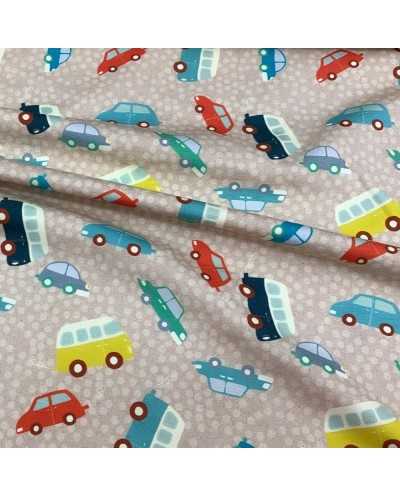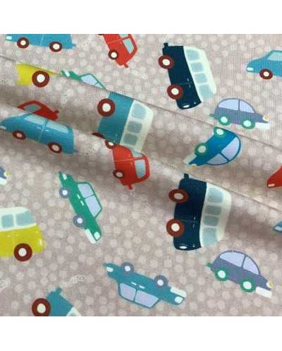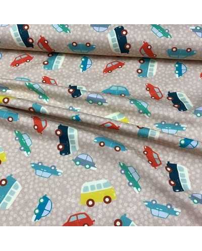 Tessuto jersey cotone stampato disegno macchinine