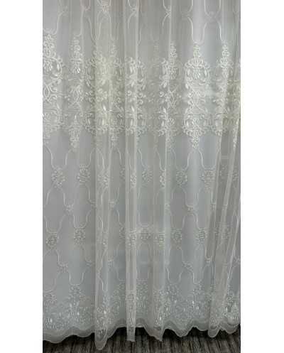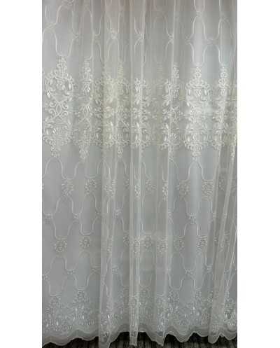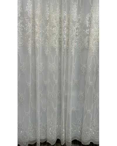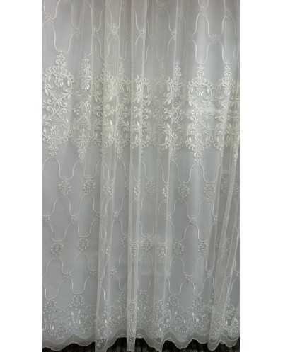 Tessuto Tenda Tulle Ricamato Panna 400x300 Cm