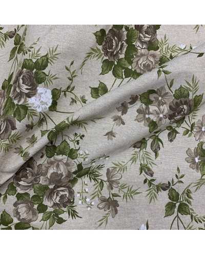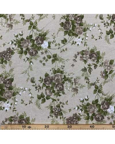 Tessuto Panama Shabby Coordinato Fiore 50 Cm Beige