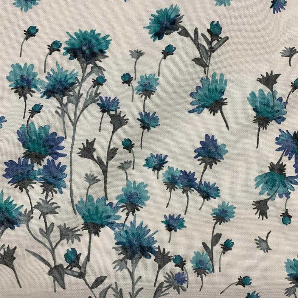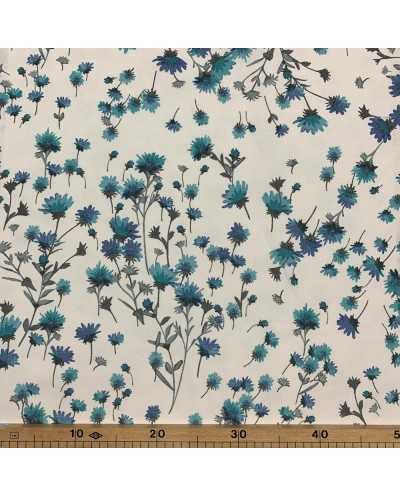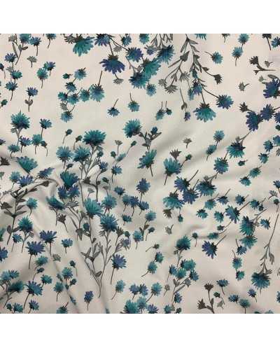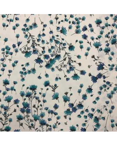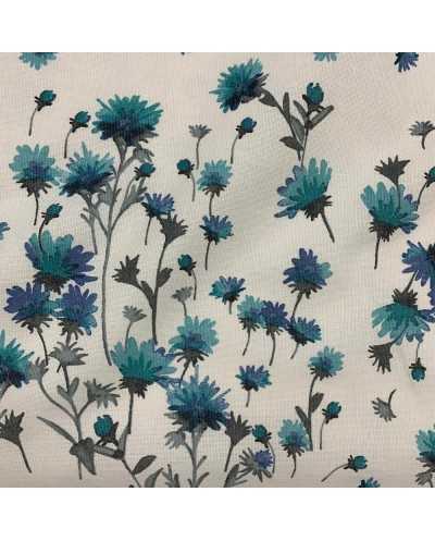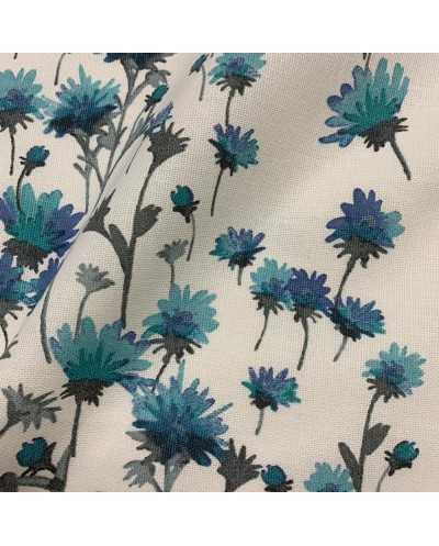 Tessuto panama stampato coordinato fondo bianco fiore grande e piccolo azzurro