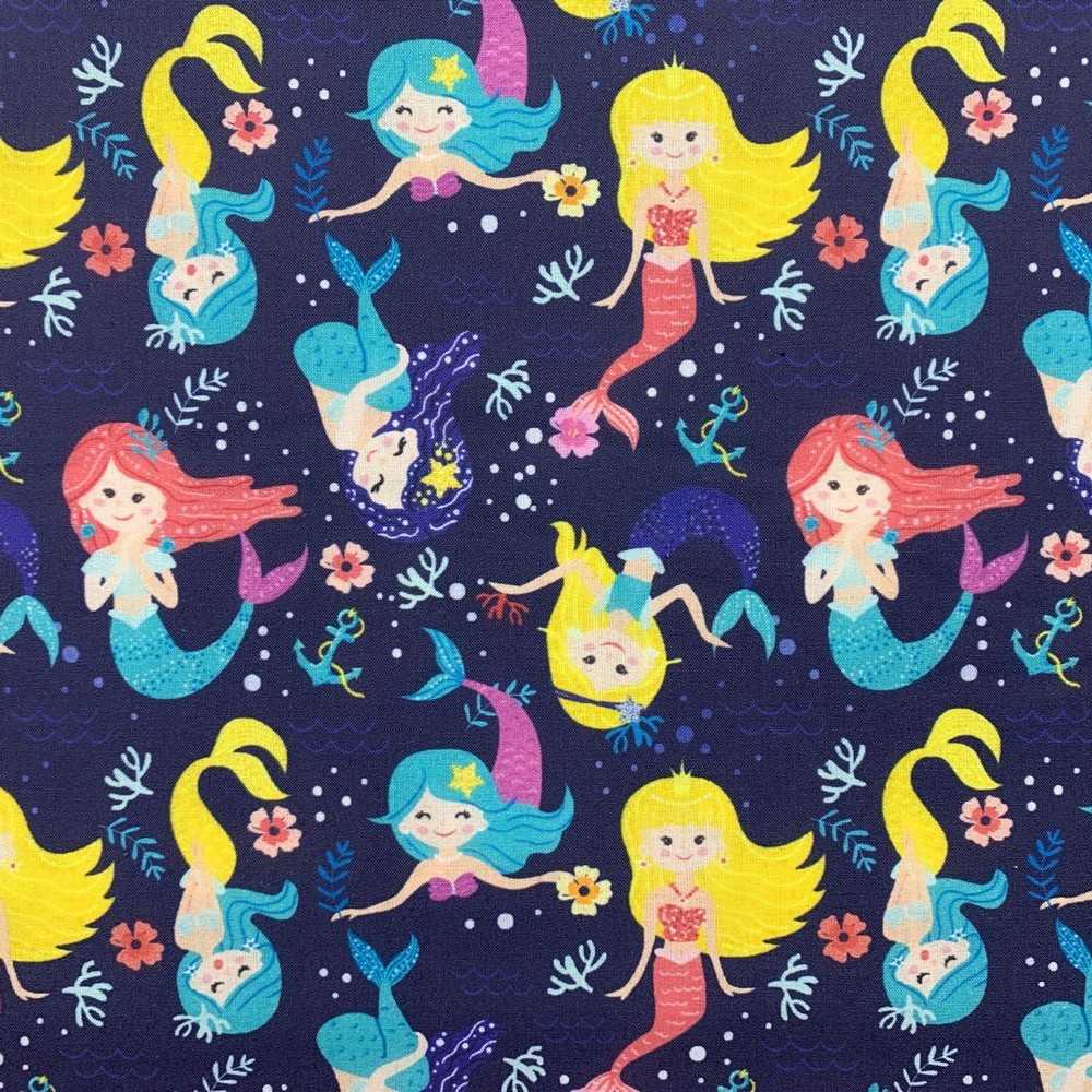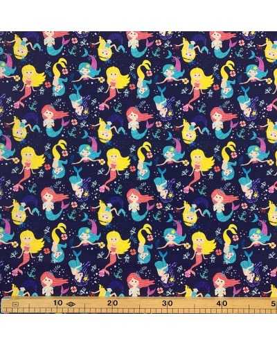 Tessuto Cotone Sirene 50 Cm Blu