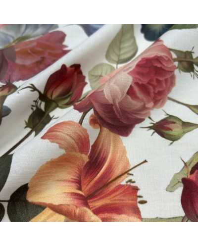 Tessuto percalle cotone stampato disegno Flores