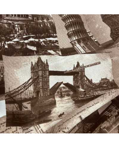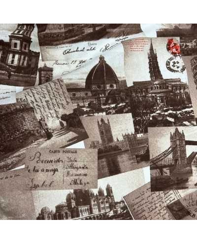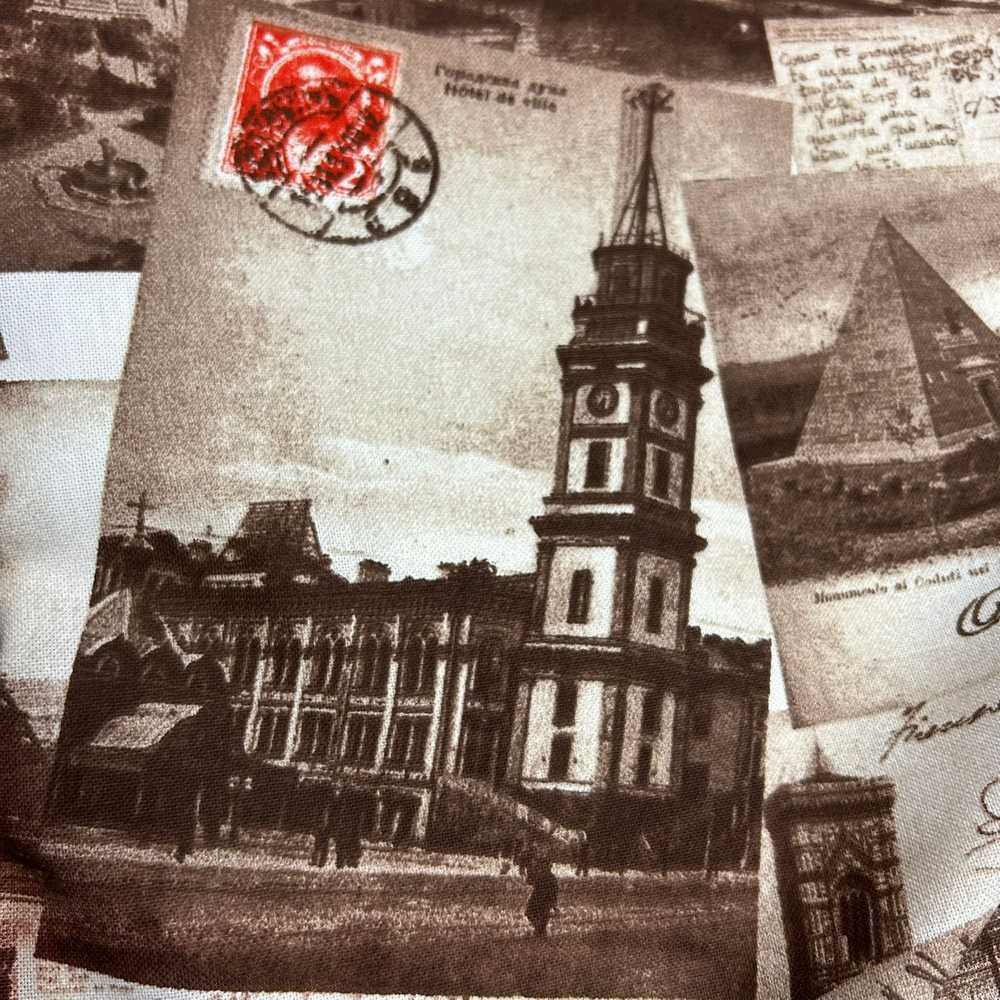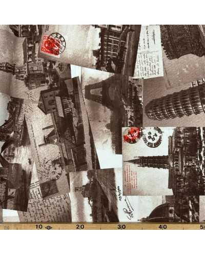 Tessuto tappezzeria e calate Via Roma 60 collezione Postcard marrone