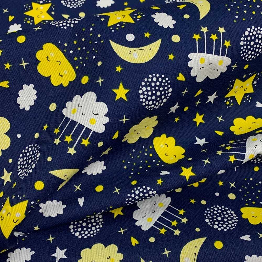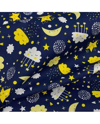 Tessuto cotone millerighe stampato luna e stelle
