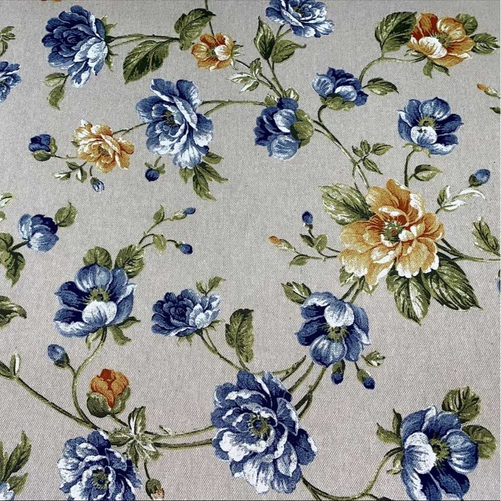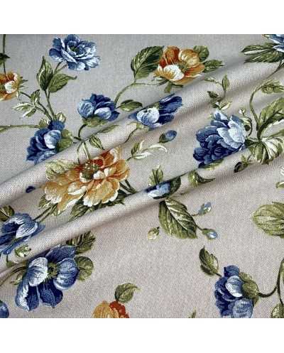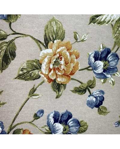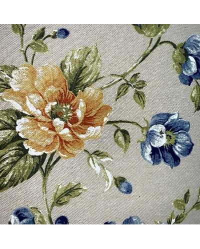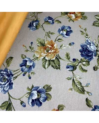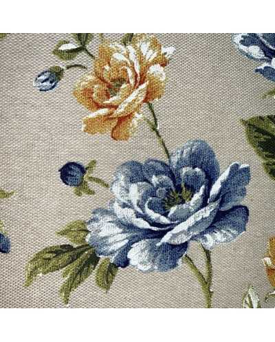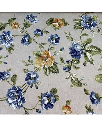 Tessuto panama stampato fiore grande e bocciolo shabby fondo grezzo bollito
