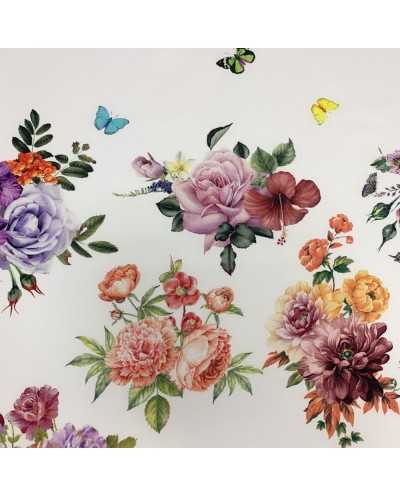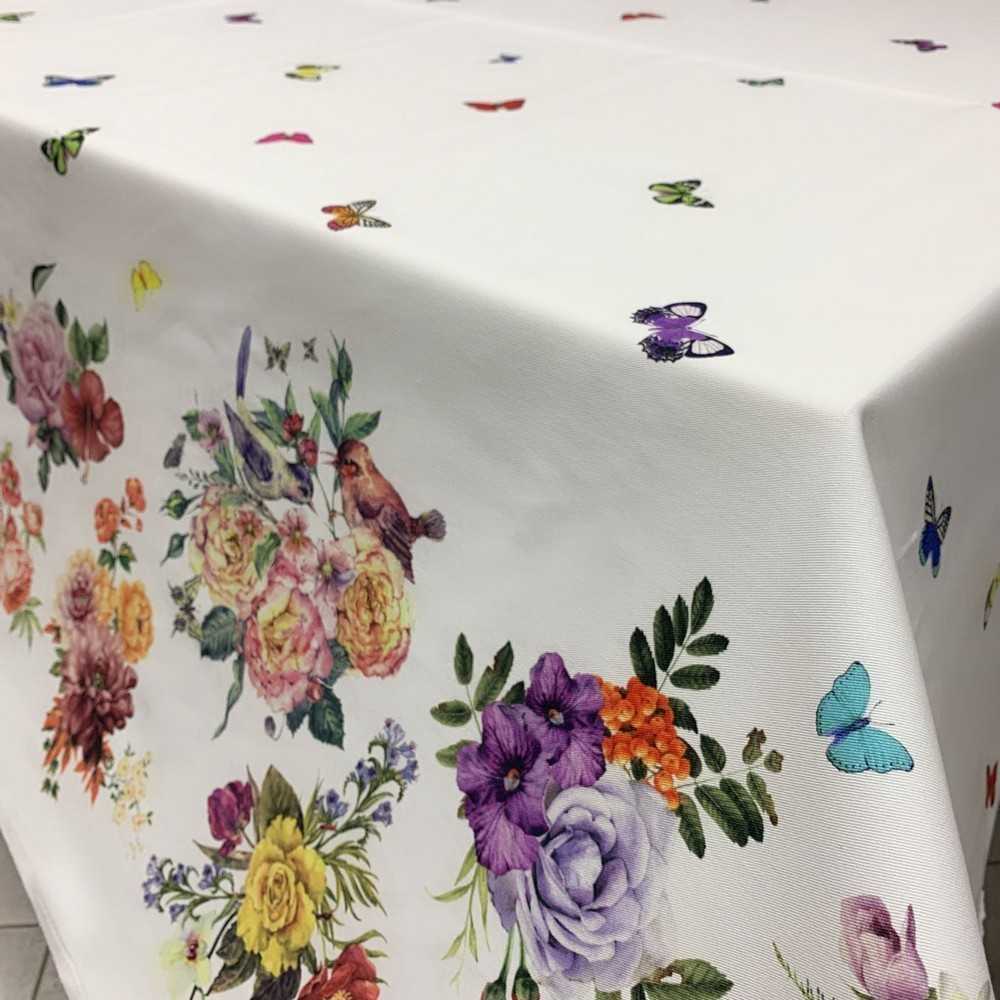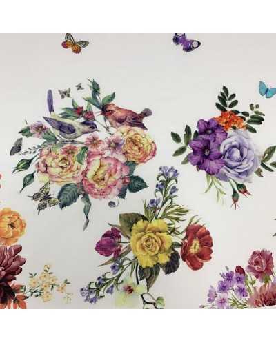 Tessuto Tovagliato Balzato Fiori Uccellini 50 Cm