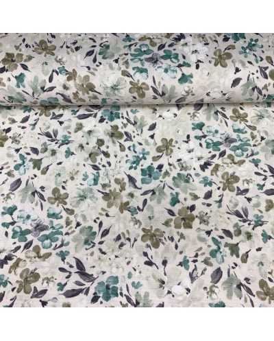 Tessuto panama stampato fiorellini fondo panna