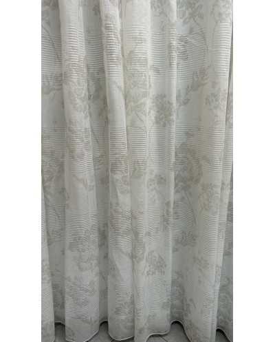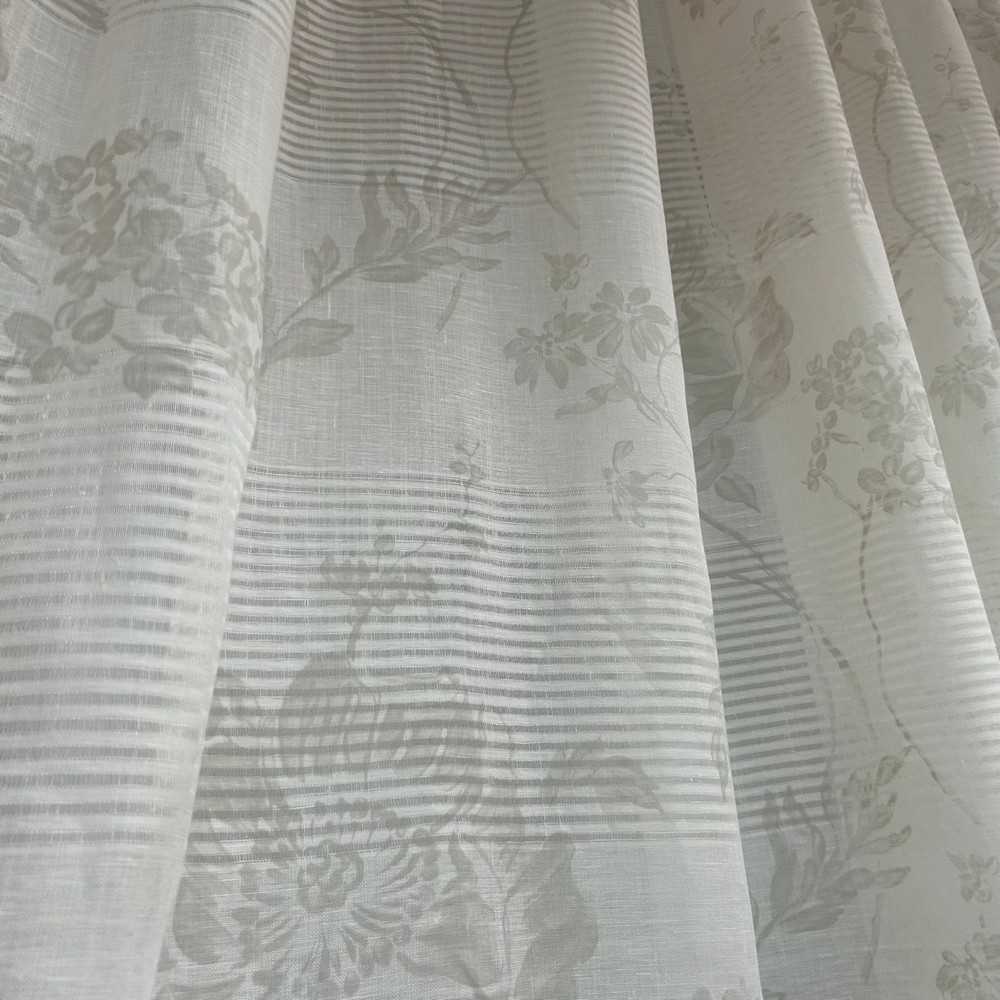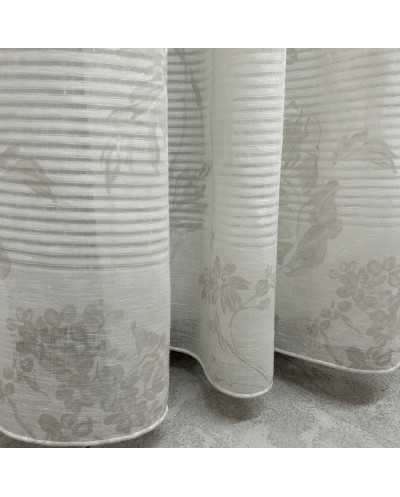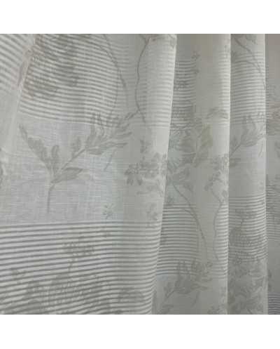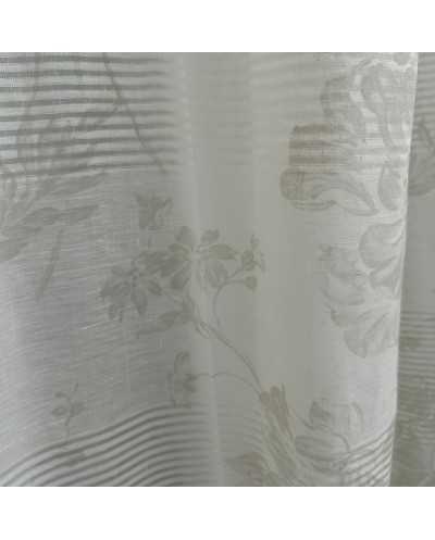 Tessuto Tenda Misto Lino Fiori E Righe 400x320 Cm