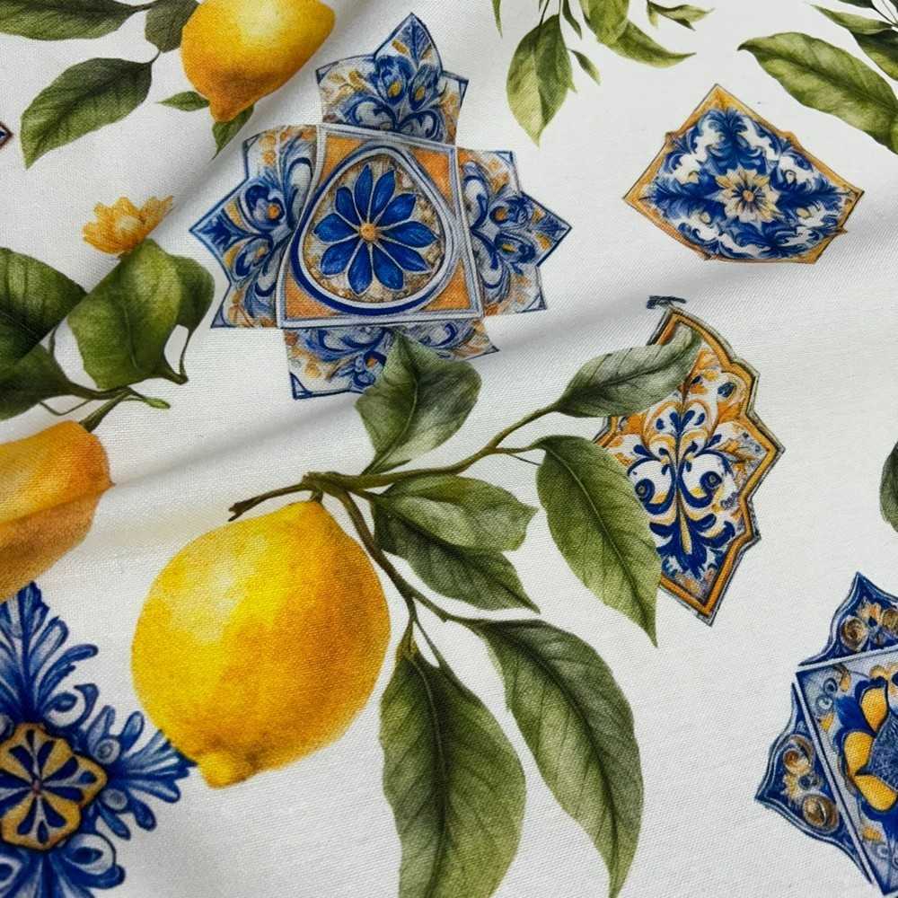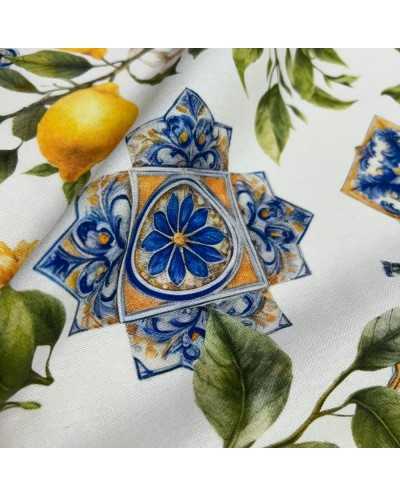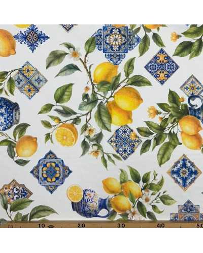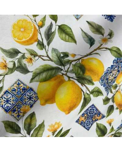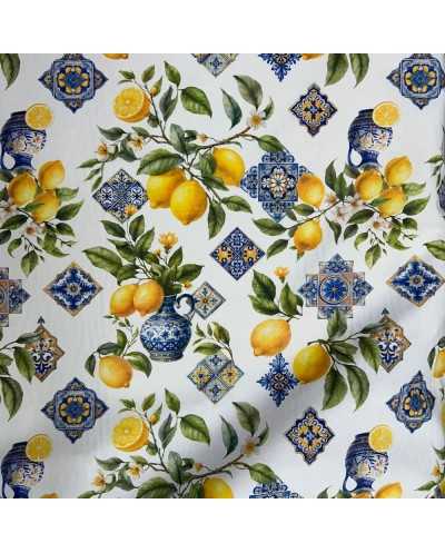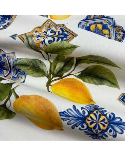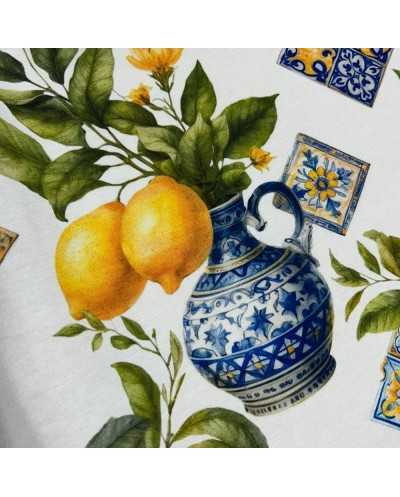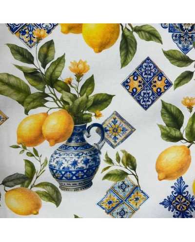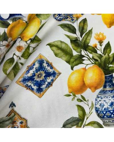 Tessuto panama per tappezzeria disegno limoni e ceramiche