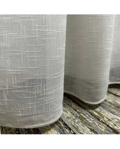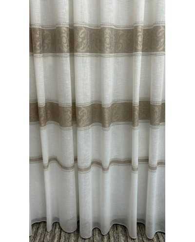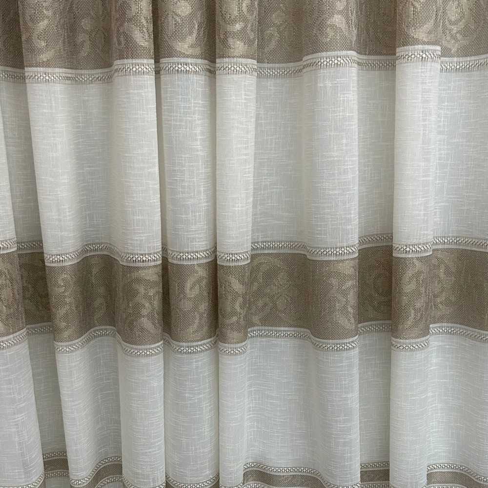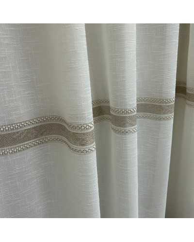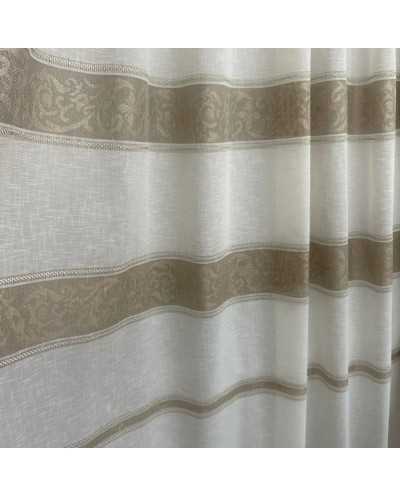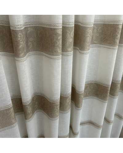 Tessuto tendaggio Aldina panna con tre balze ricamate a filet nocciola e filo iridescente