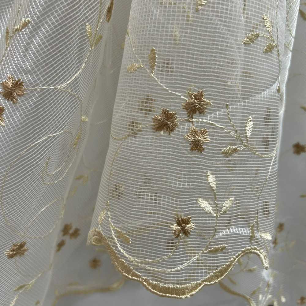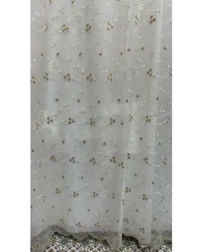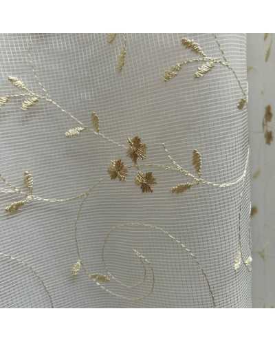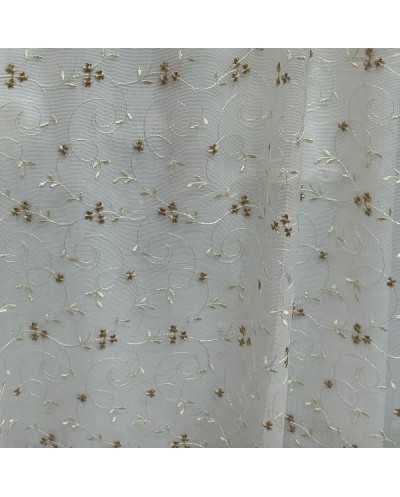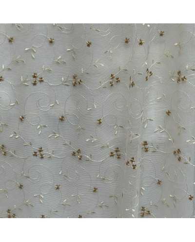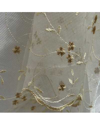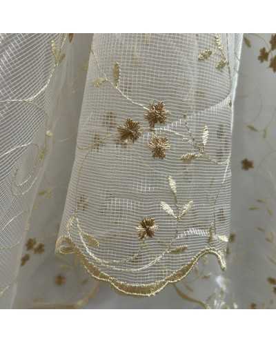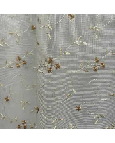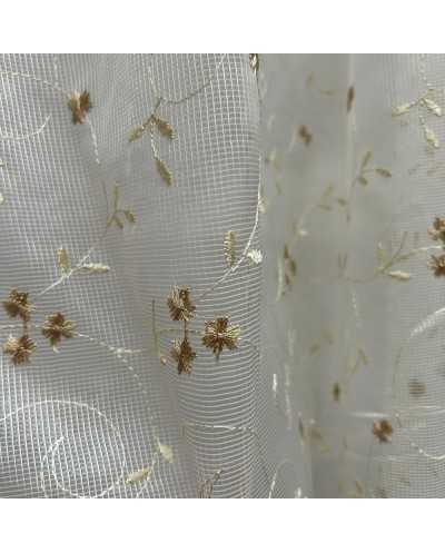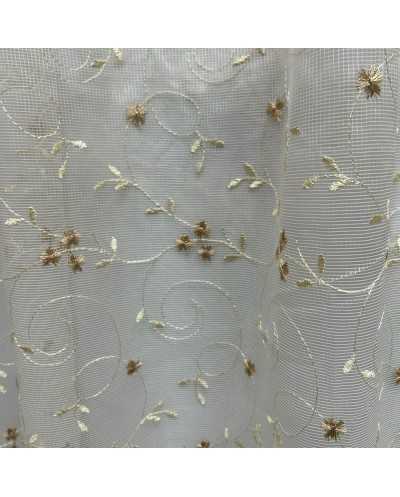 Tessuto tenda rete ricamata panna fiorellini oro e nocciola