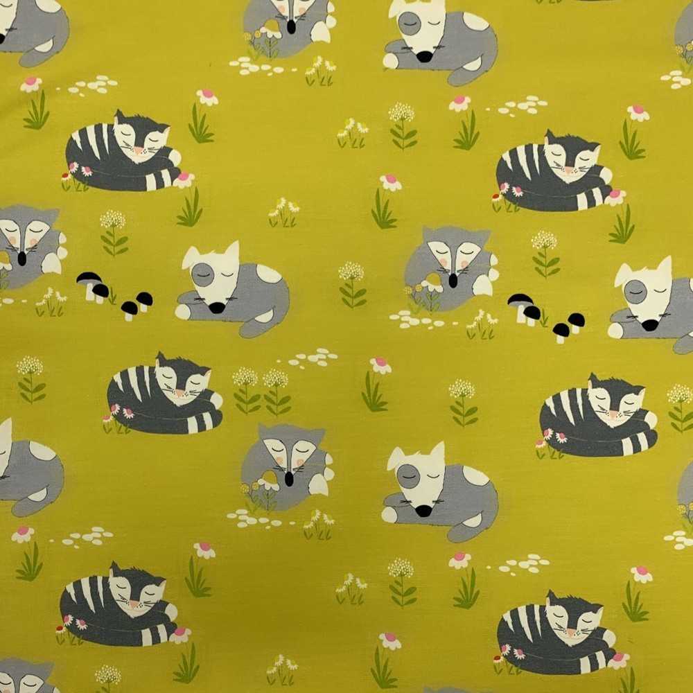Tessuto jersey cotone stampato disegno animaletti del bosco