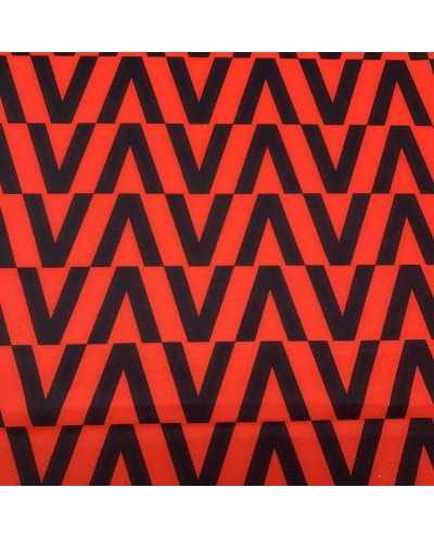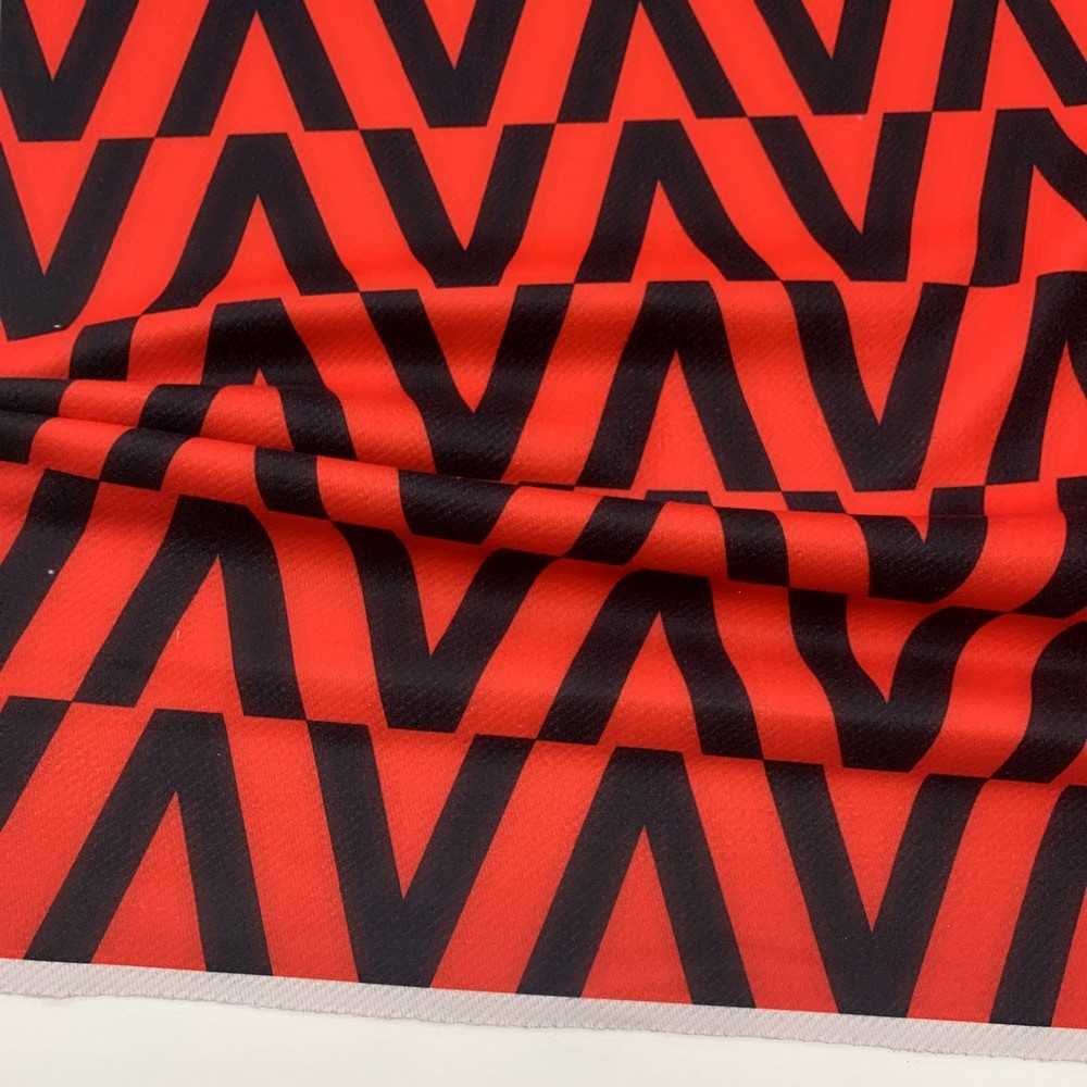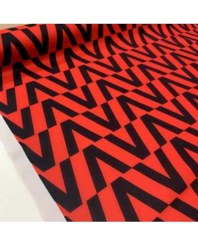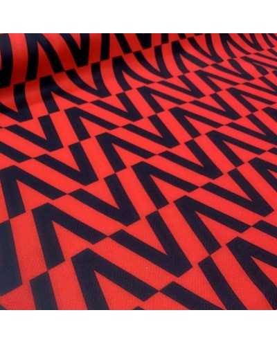 Tessuto panno da cappottino stampa geometrica rosso e nero