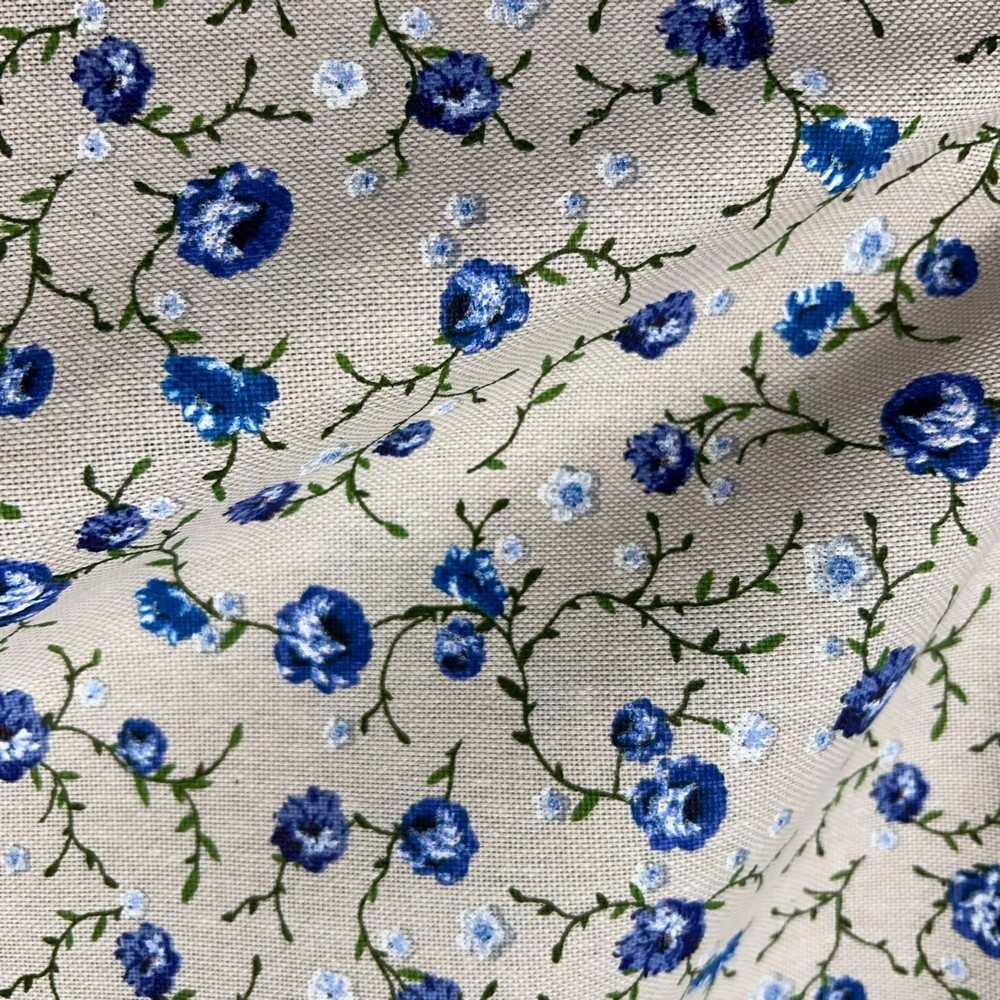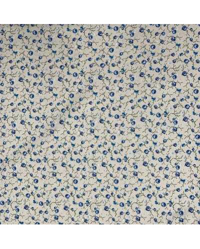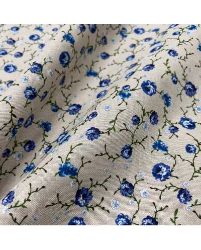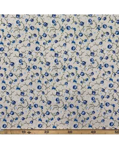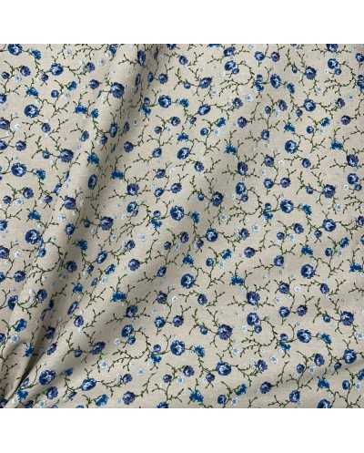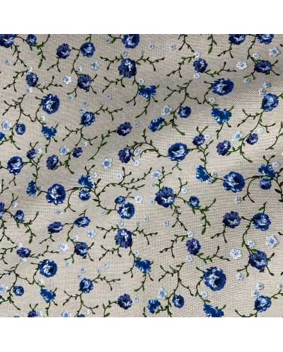 Tessuto cotone per tappezzeria fiorellino azzurro fondo grezzo bollito