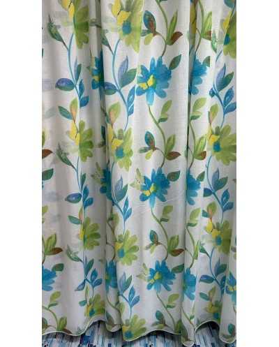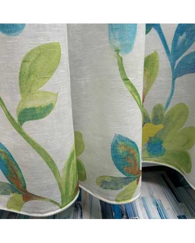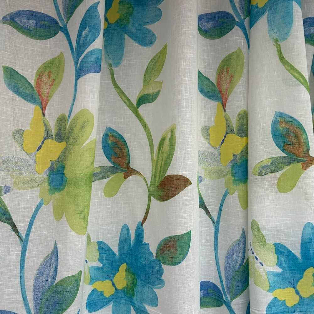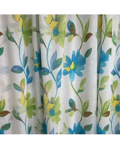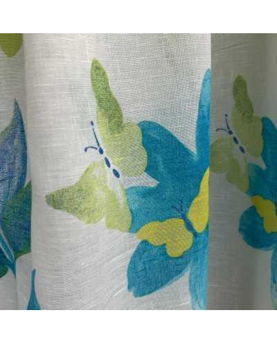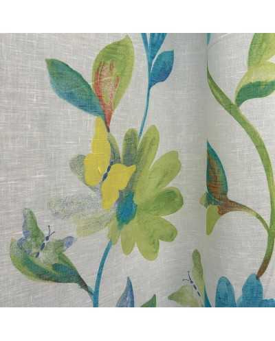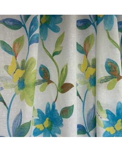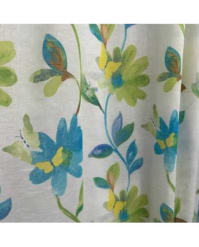 Tessuto tenda Via Roma 60 collezione Judy fondo bianco fiori e farfalle