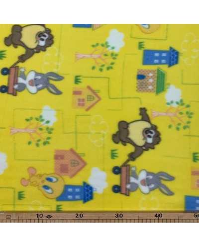 Tessuto Pile Cartoni Animati Città 50 Cm