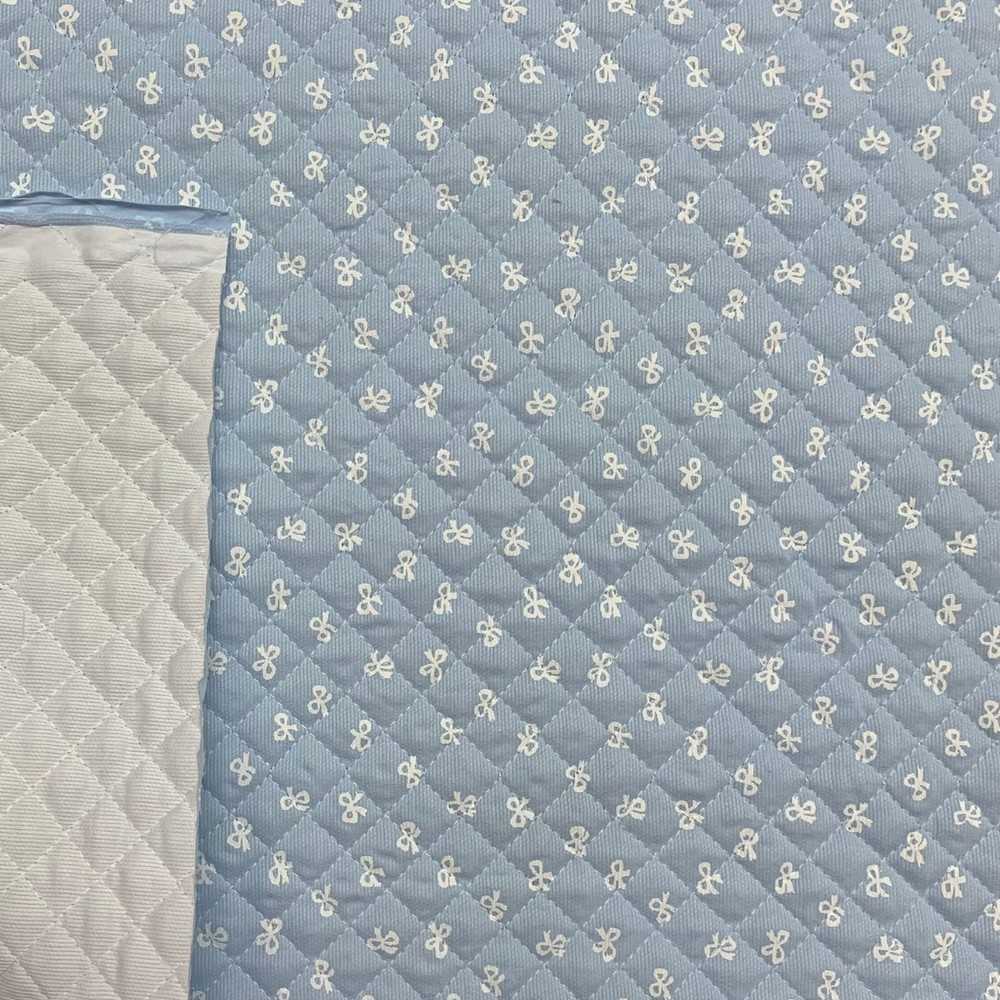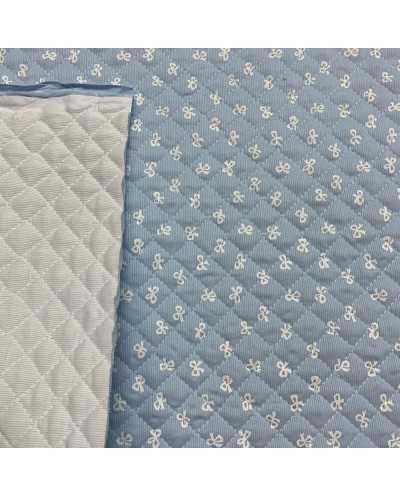 Tessuto trapunto millerighe doppia faccia fiocco celeste
