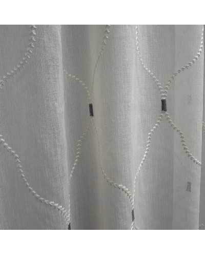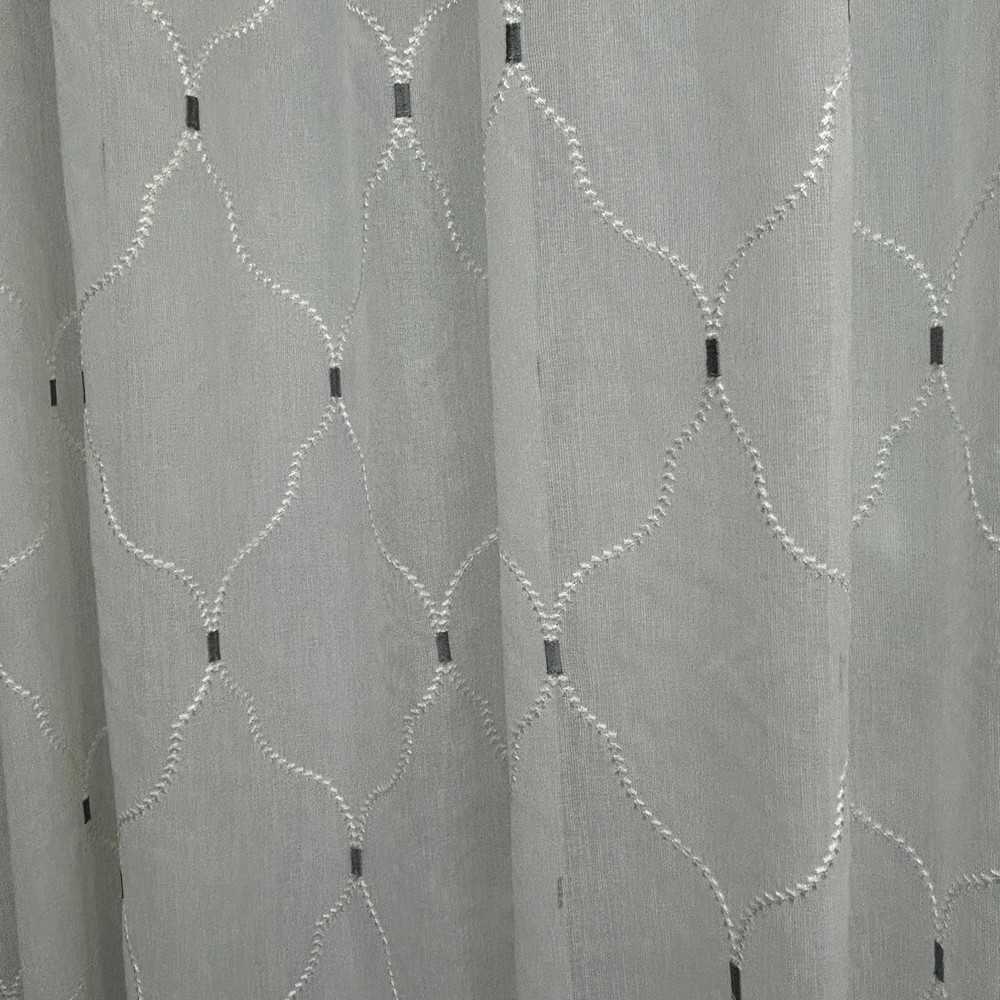 Tessuto tenda ricamata collezione Flavia fondo bianco ricamo grigio