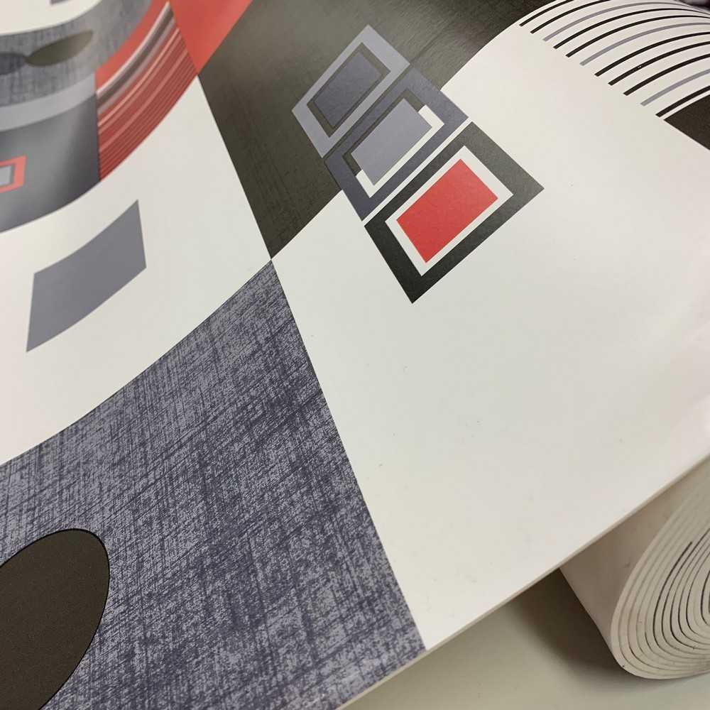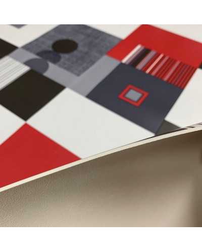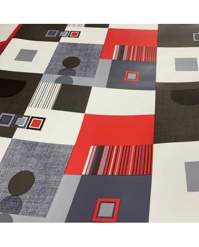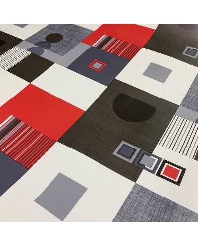 Tessuto plasticone disegno geometrico grigio e rosso