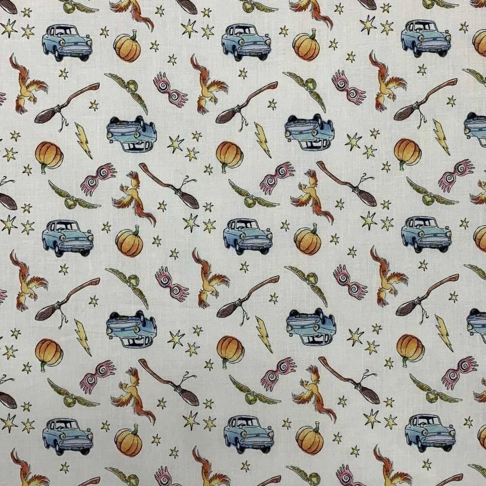 Tessuto cotone stampato fondo bianco con zucca
