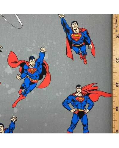 Tessuto cotone stampato supereroi Marvel Superman fondo grigio