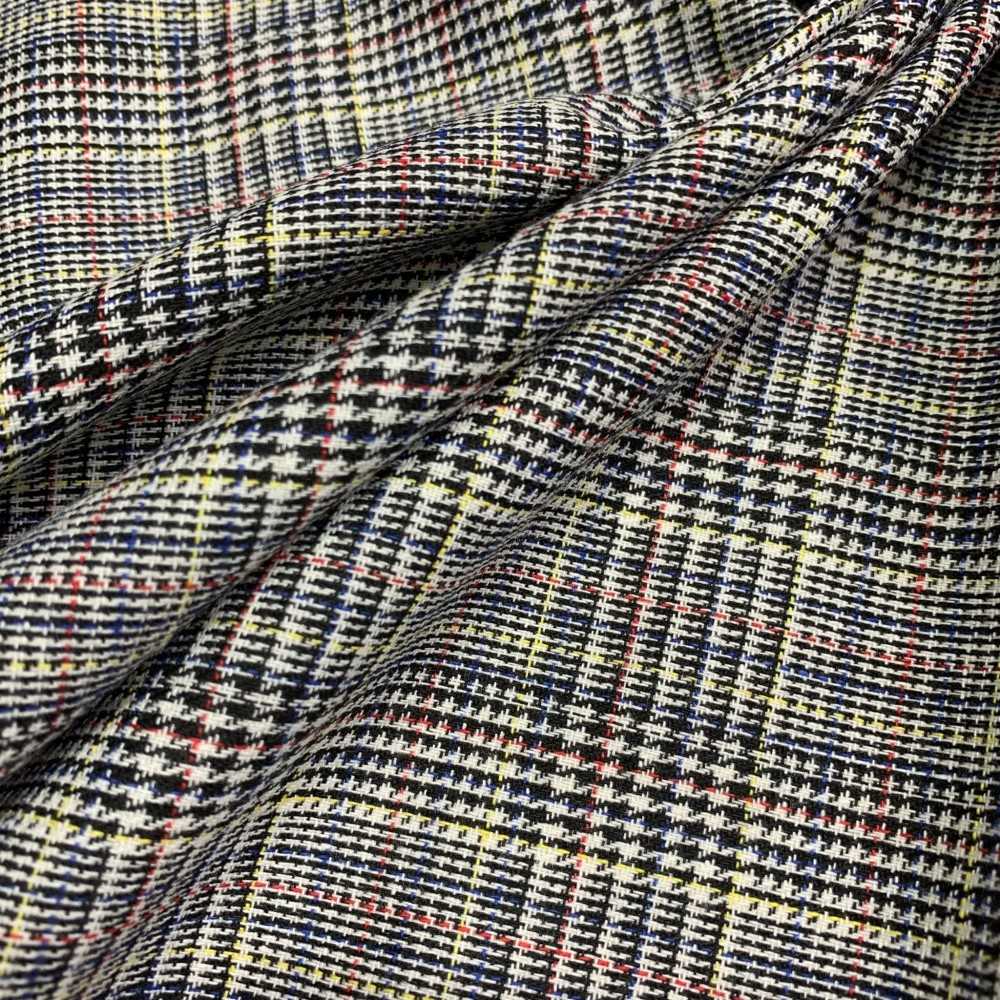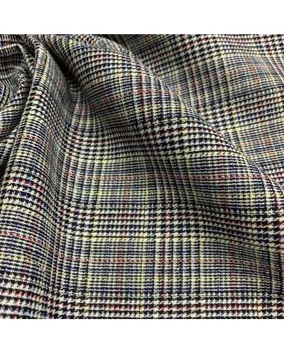 Tessuto principe di Galles Ar25: base panna/nero con righe giallo, blu e rosso