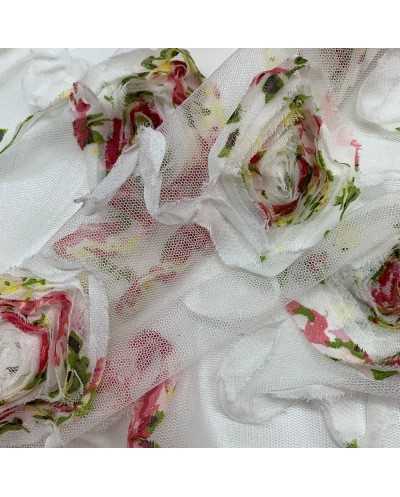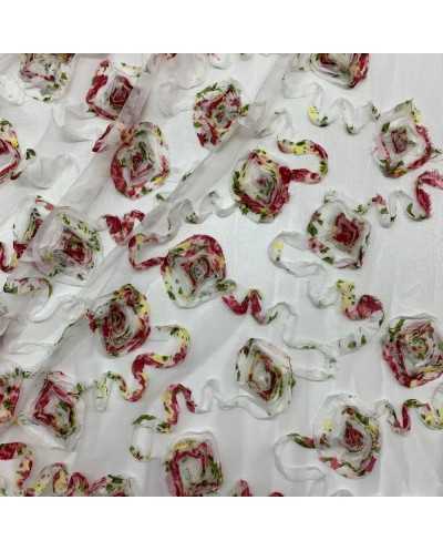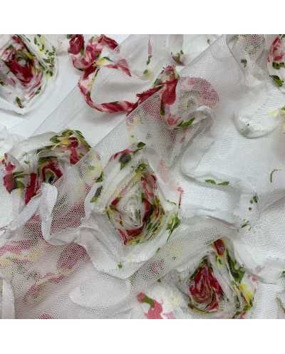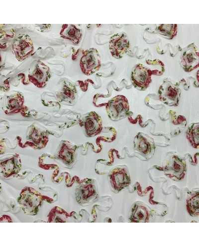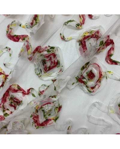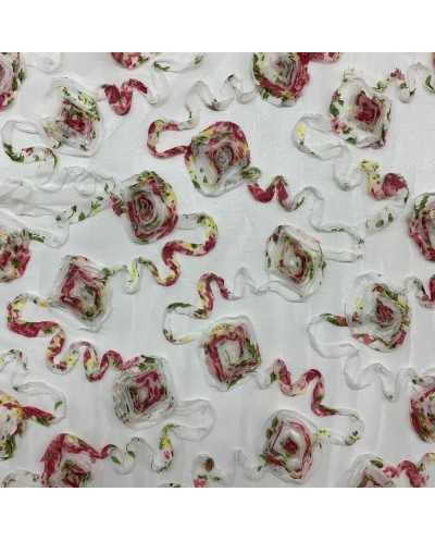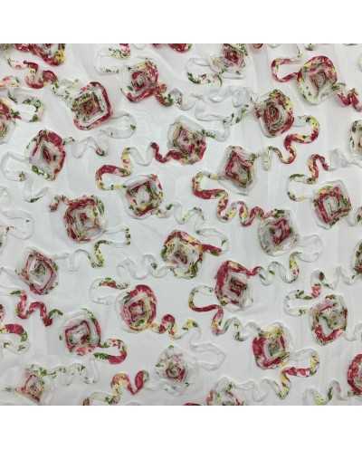 Tessuto Tulle Ricamato Nastino Chiffon 50 Cm