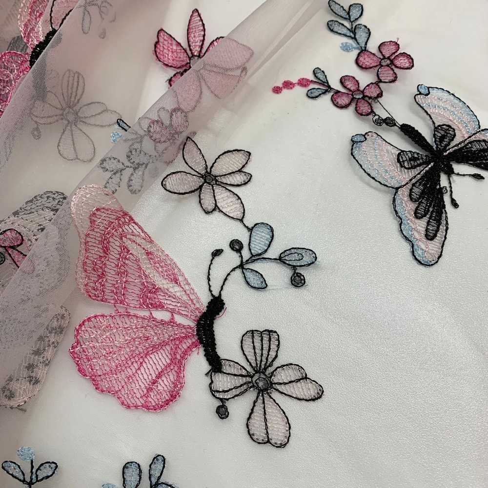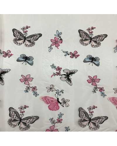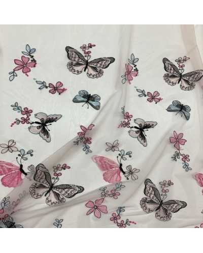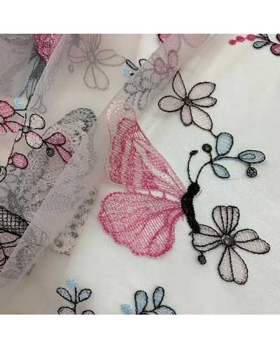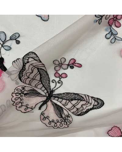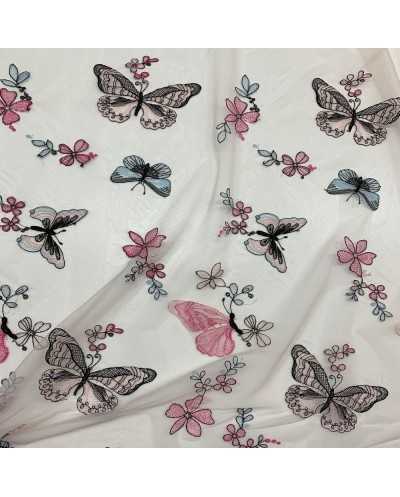 Tessuto Tulle Ricamato Farfalle 50 Cm