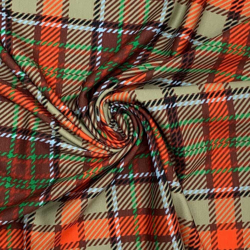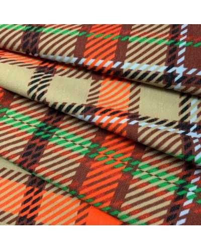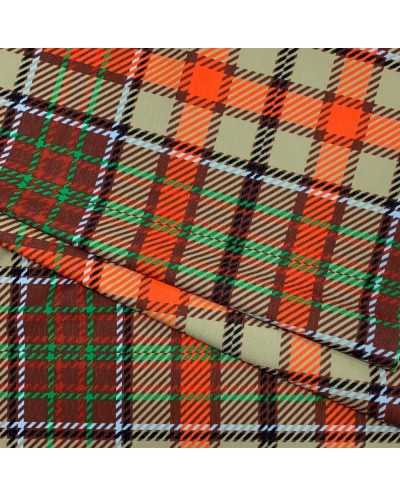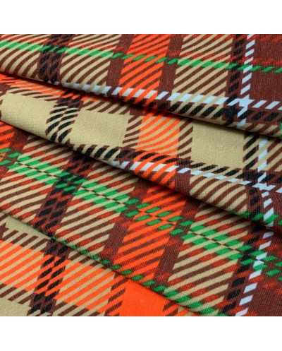 Tessuto Jersey Punto Roma Scozzese Verde Arancio 50 Cm