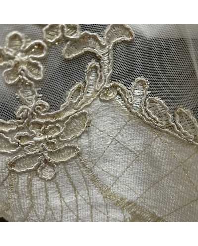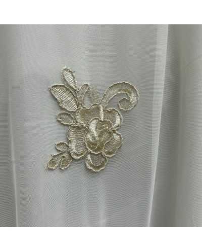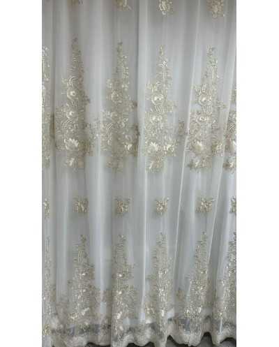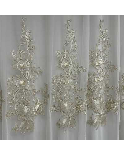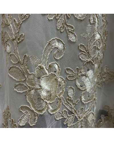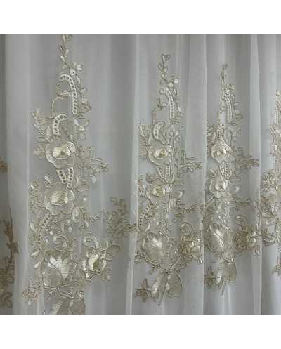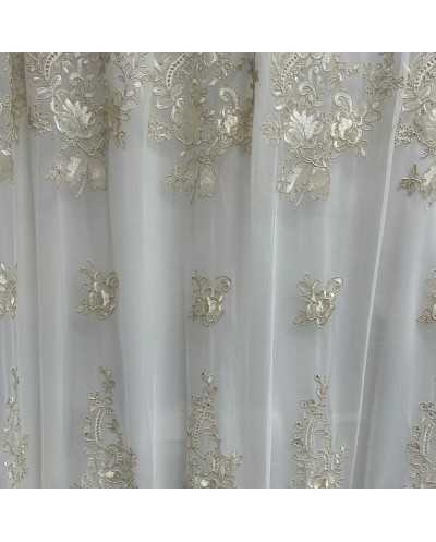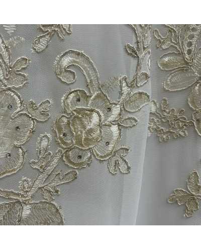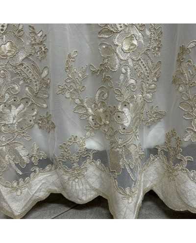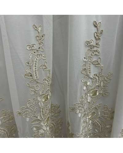 Tessuto tenda tulle panna ricamato oro con strass disegno Brigitte