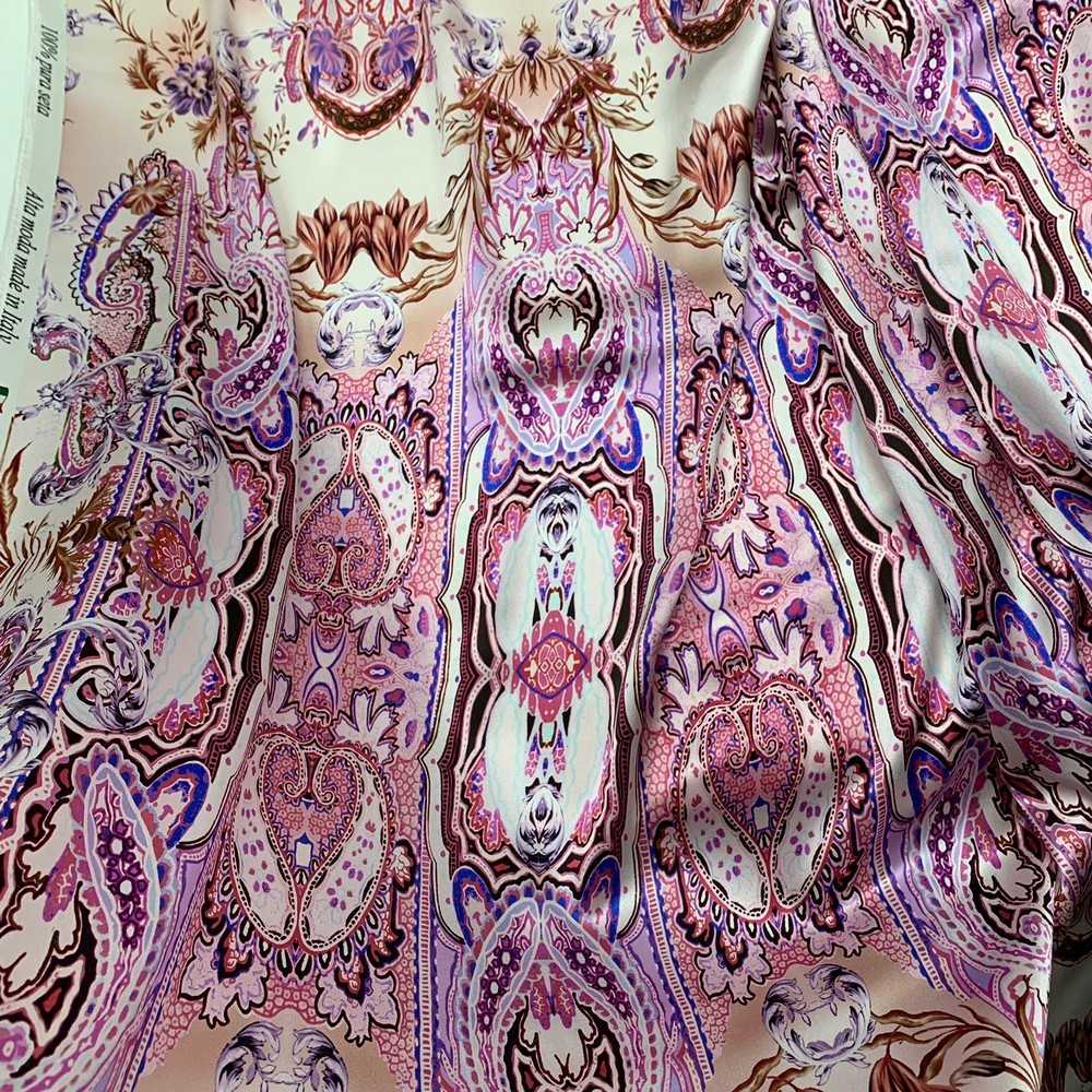 Tessuto Pura Seta Flores Rosa 50 Cm