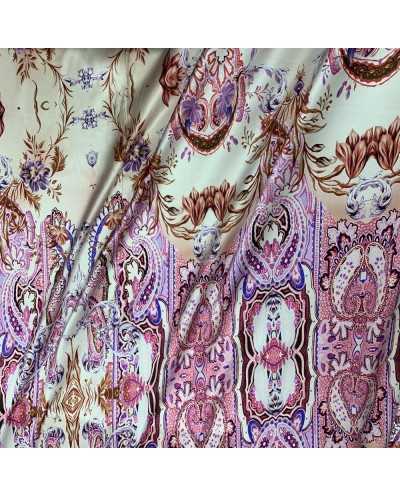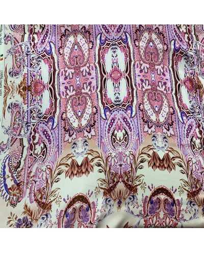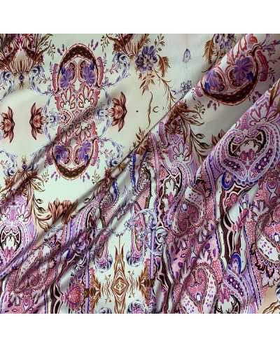 Tessuto pura seta stampata disegno Flores rosa e fucsia
