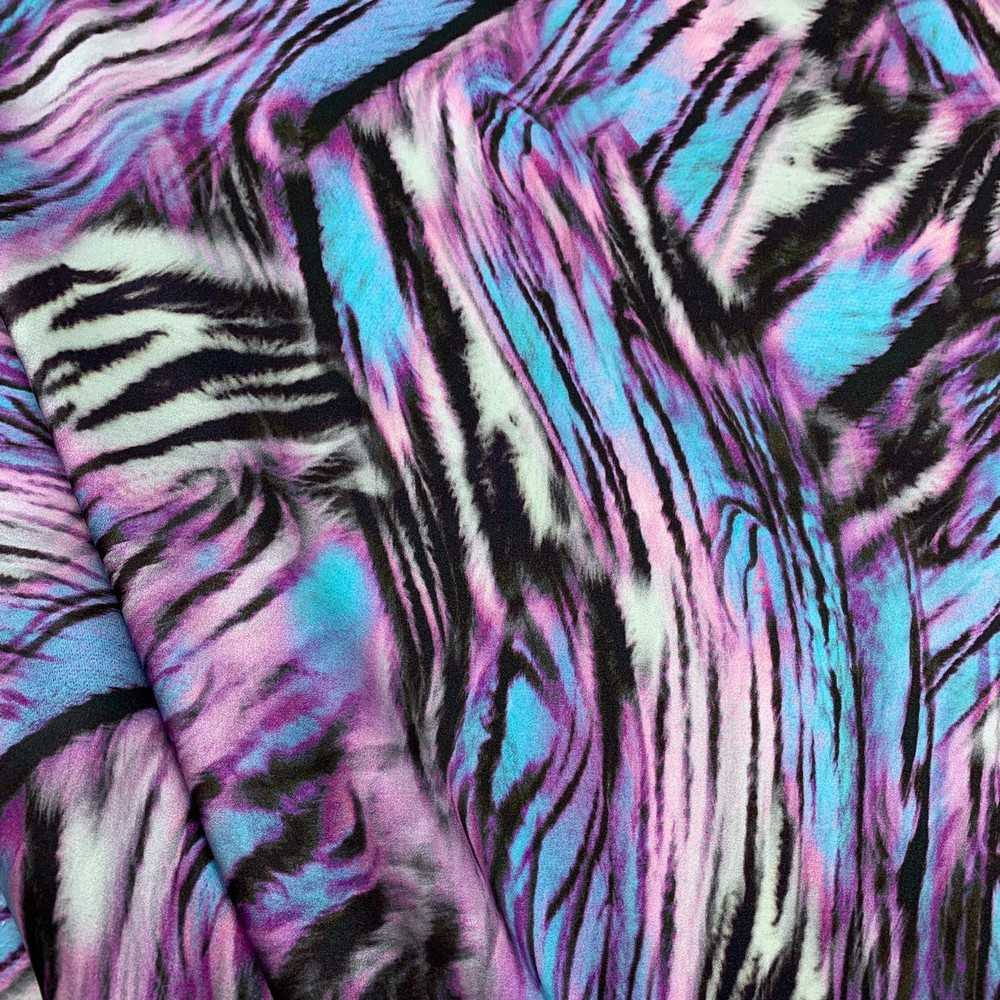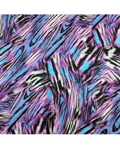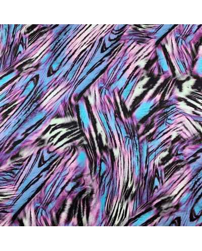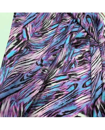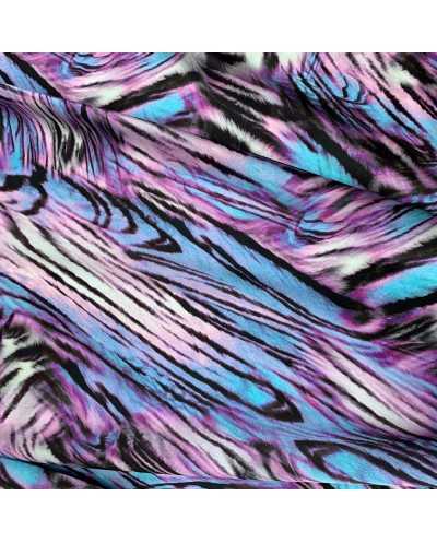 Tessuto pura seta stampata disegno Montecarlo color turchese e violetto
