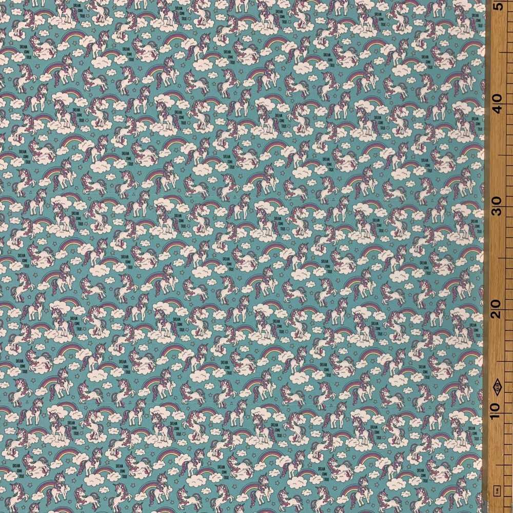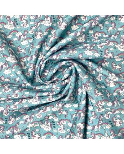 Tessuto microfibra stampe baby disegno unicorno e arcobaleno